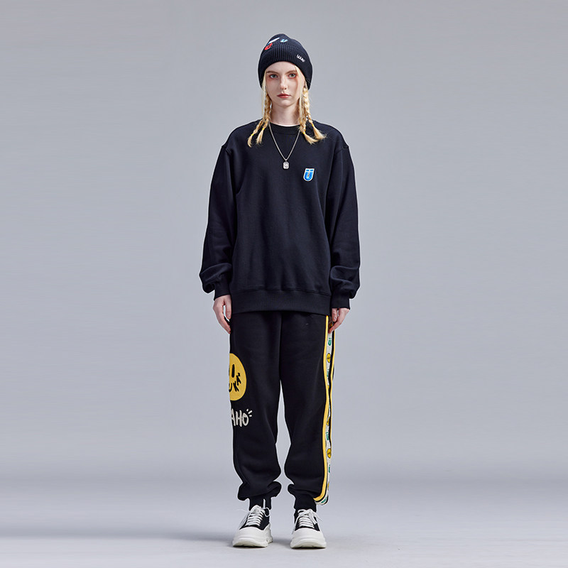GUUKA黑色圆领卫衣,2023春秋新款潮牌力作,融合美式极简风格与街头潮流元素。采用优质纯棉面料,触感柔软,透气亲肤,oversize廓形设计,轻松穿出慵懒随性范儿。胸前精致刺绣logo点缀,低调中彰显品牌质感,细节考究。经典黑色百搭耐看,男女同款,是情侣出街的时尚之选。无论是搭配牛仔裤、工装裤还是短裙,都能轻松驾驭多种风格,展现个性态度。GUUKA以简约设计诠释潮流态度,这款卫衣不仅是衣橱必备单品,更是表达自我风格的理想选择。