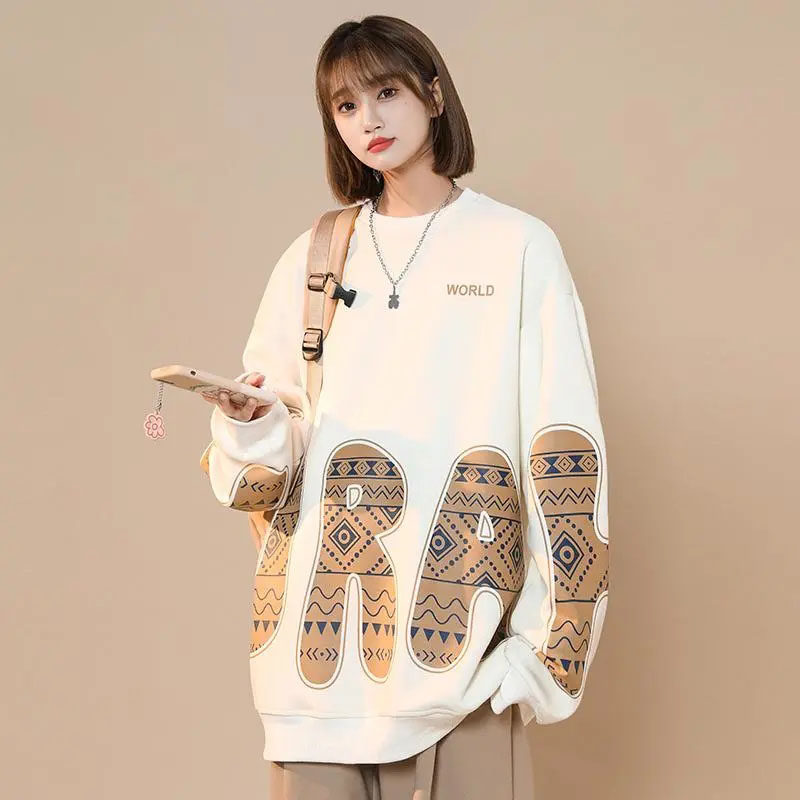 天班尼路灰色卫衣女2025秋季新款宽松圆领套头慵懒松弛感薄款上衣H