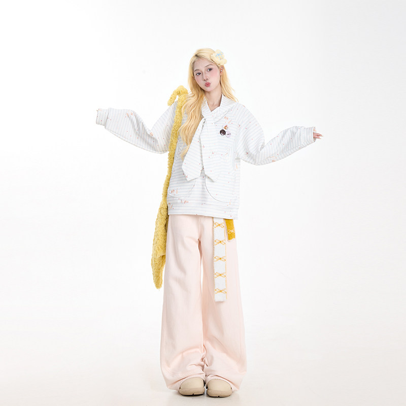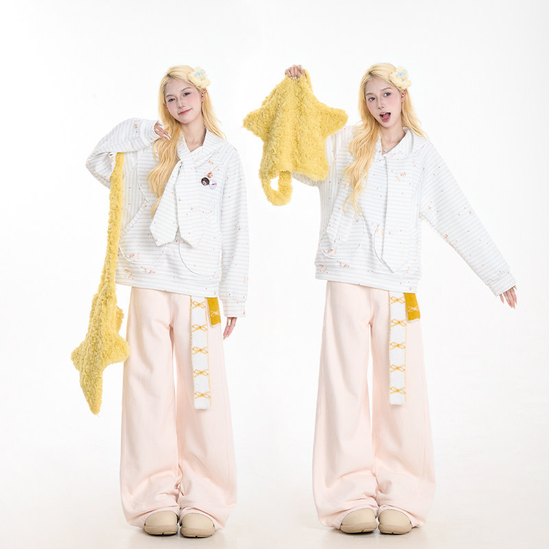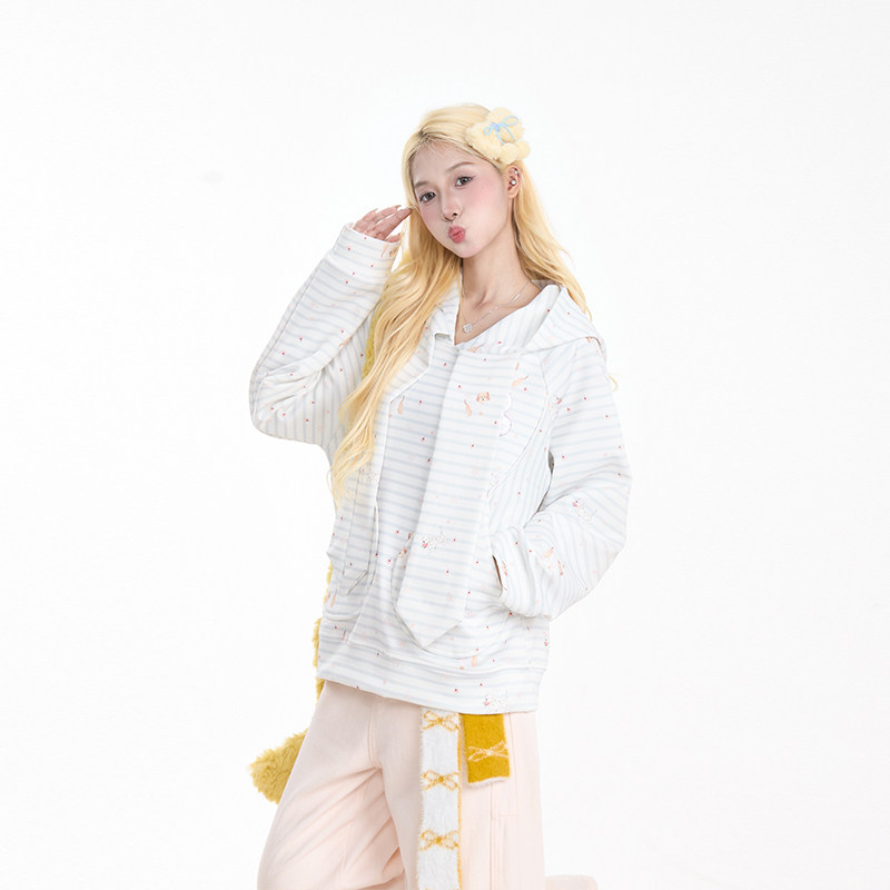 淘宝NERESUM可爱小狗条纹绑带连帽卫衣女秋冬韩系设计感宽松慵懒帽衫