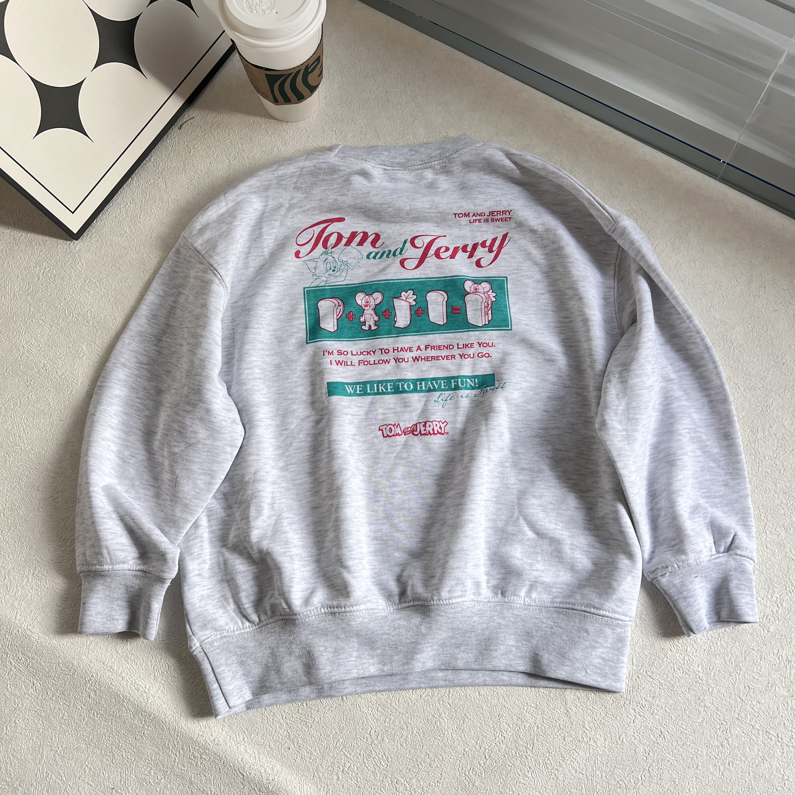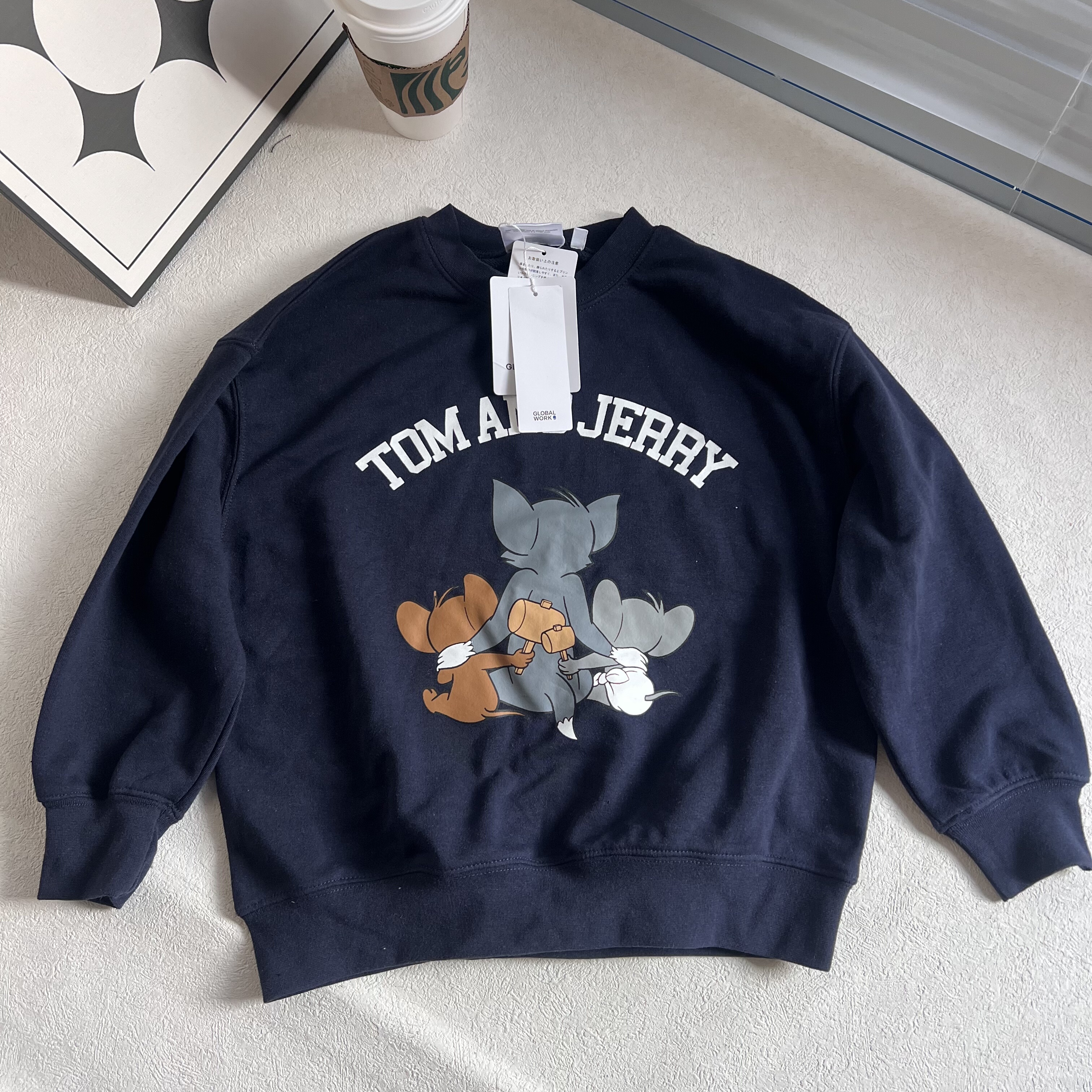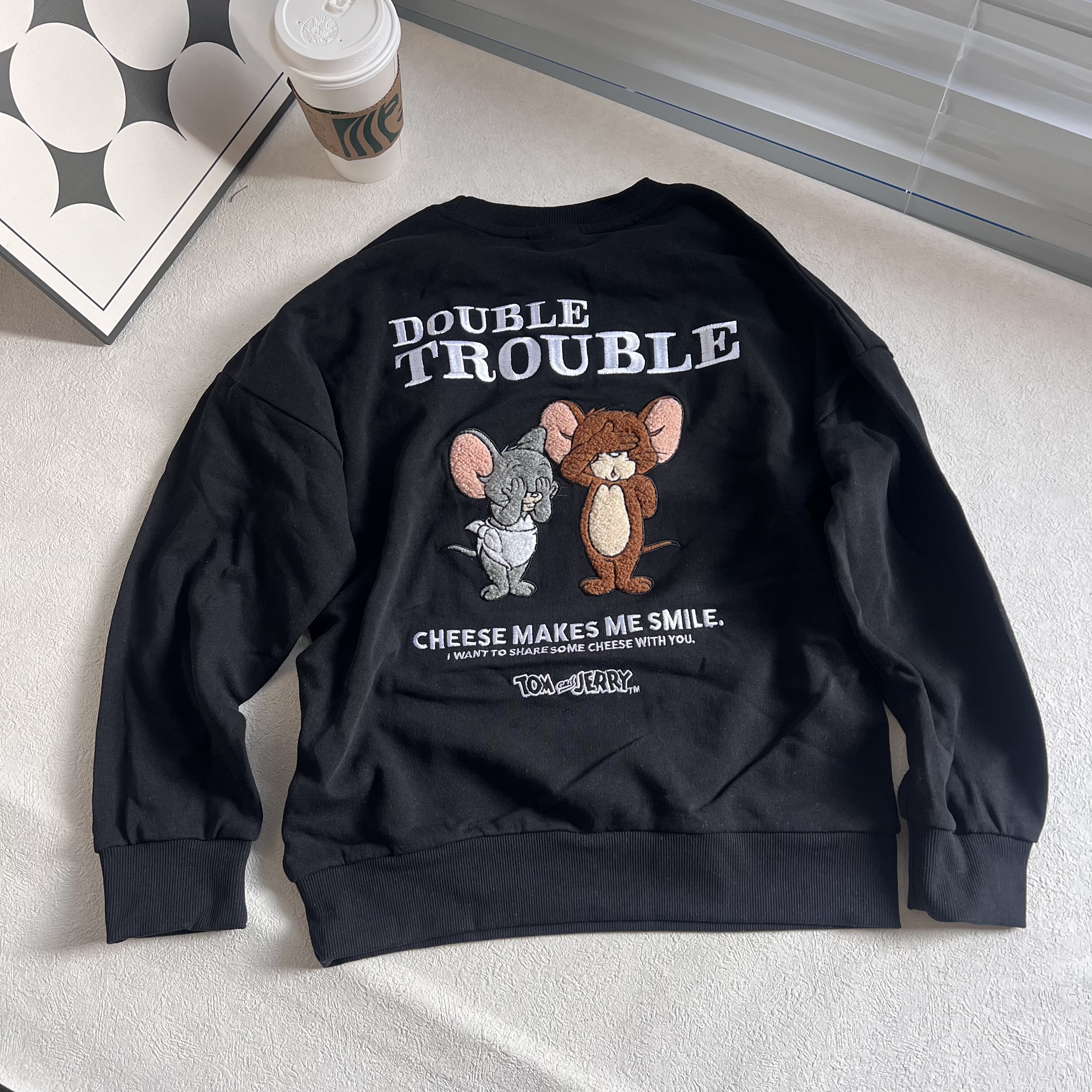 天HM男装女装卫衣冬季加绒美式情侣圆领落肩袖宽松套头衫0970818