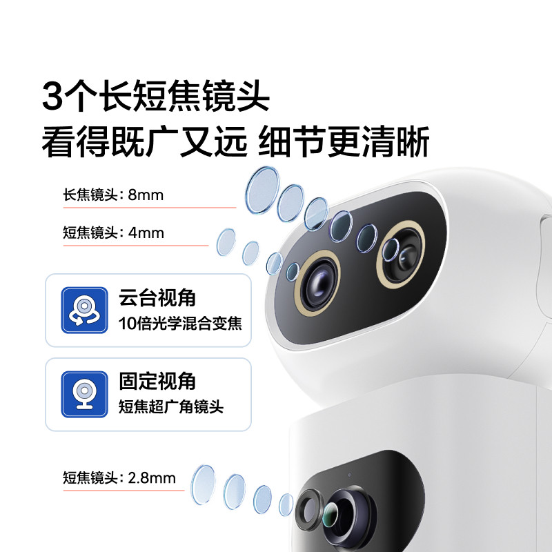 天猫小度智能摄像机C1200三摄版 变焦摄像头家用监控手机远程无线室内