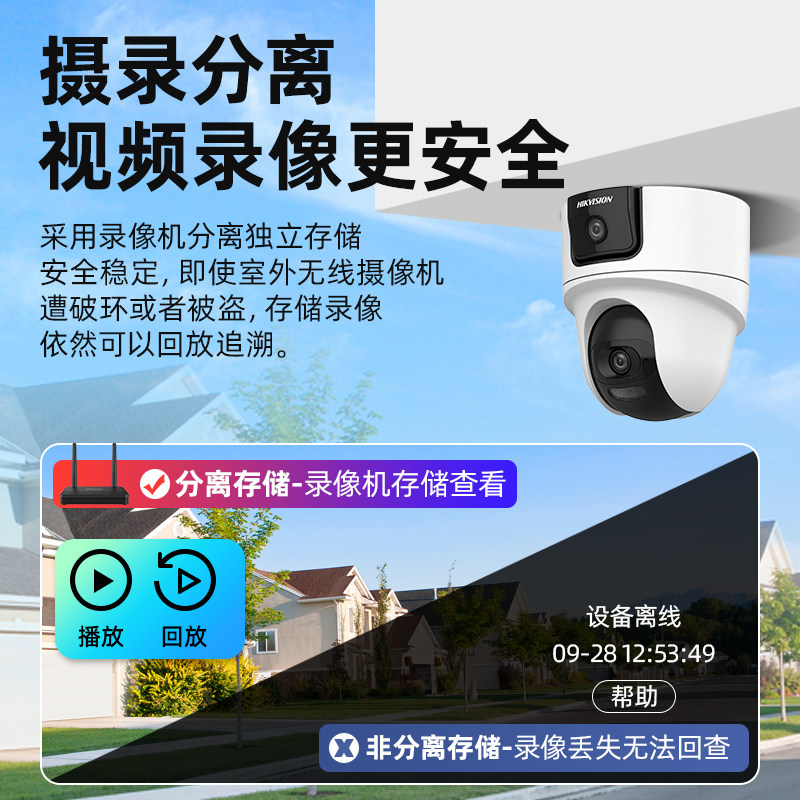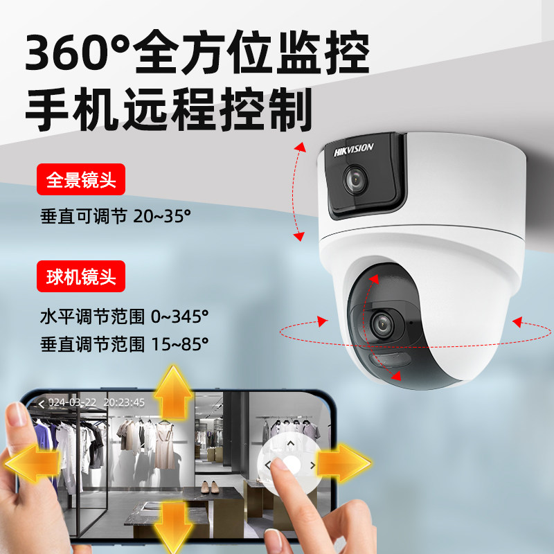 天猫海康威视无线WiFi摄像影头360度手机远程商用店铺高清室内监控器