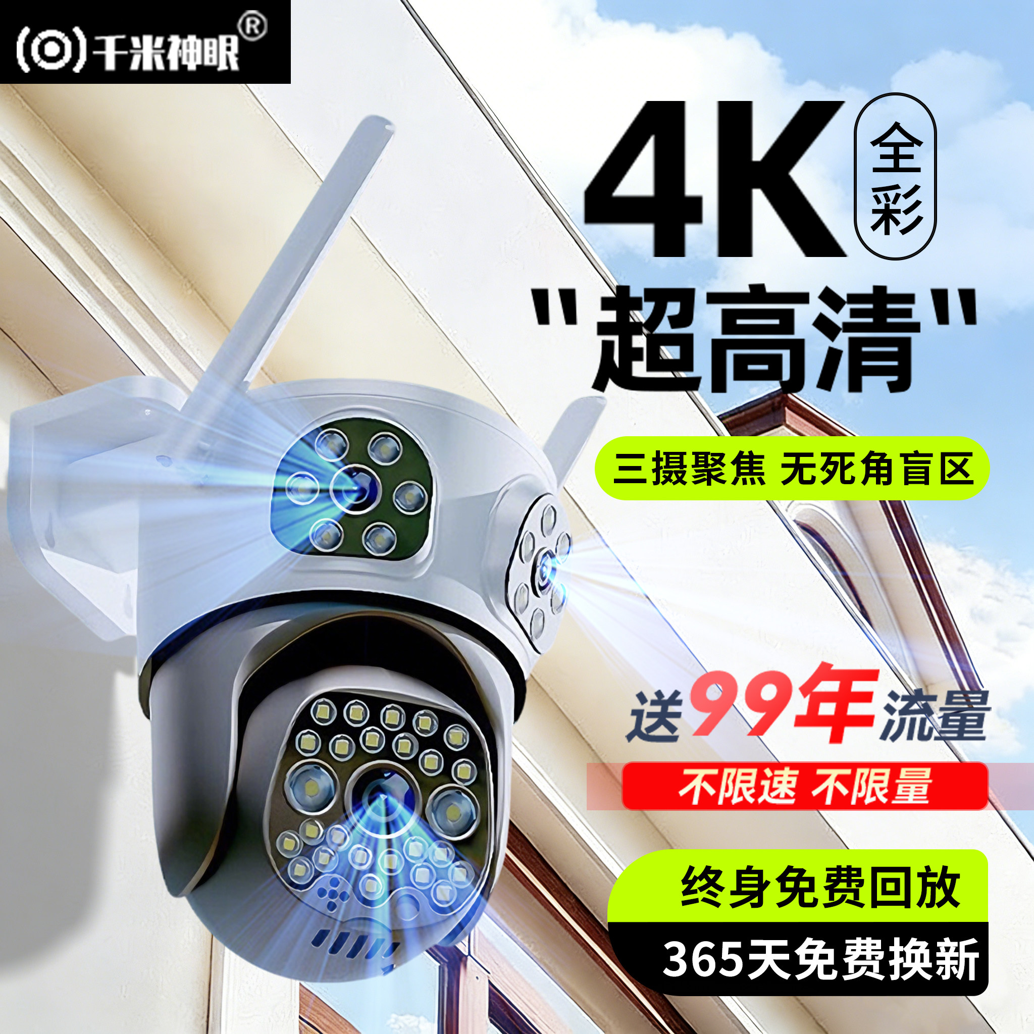 360室外摄像头监控器家用户外手机远程门口无线网络360全景摄影头