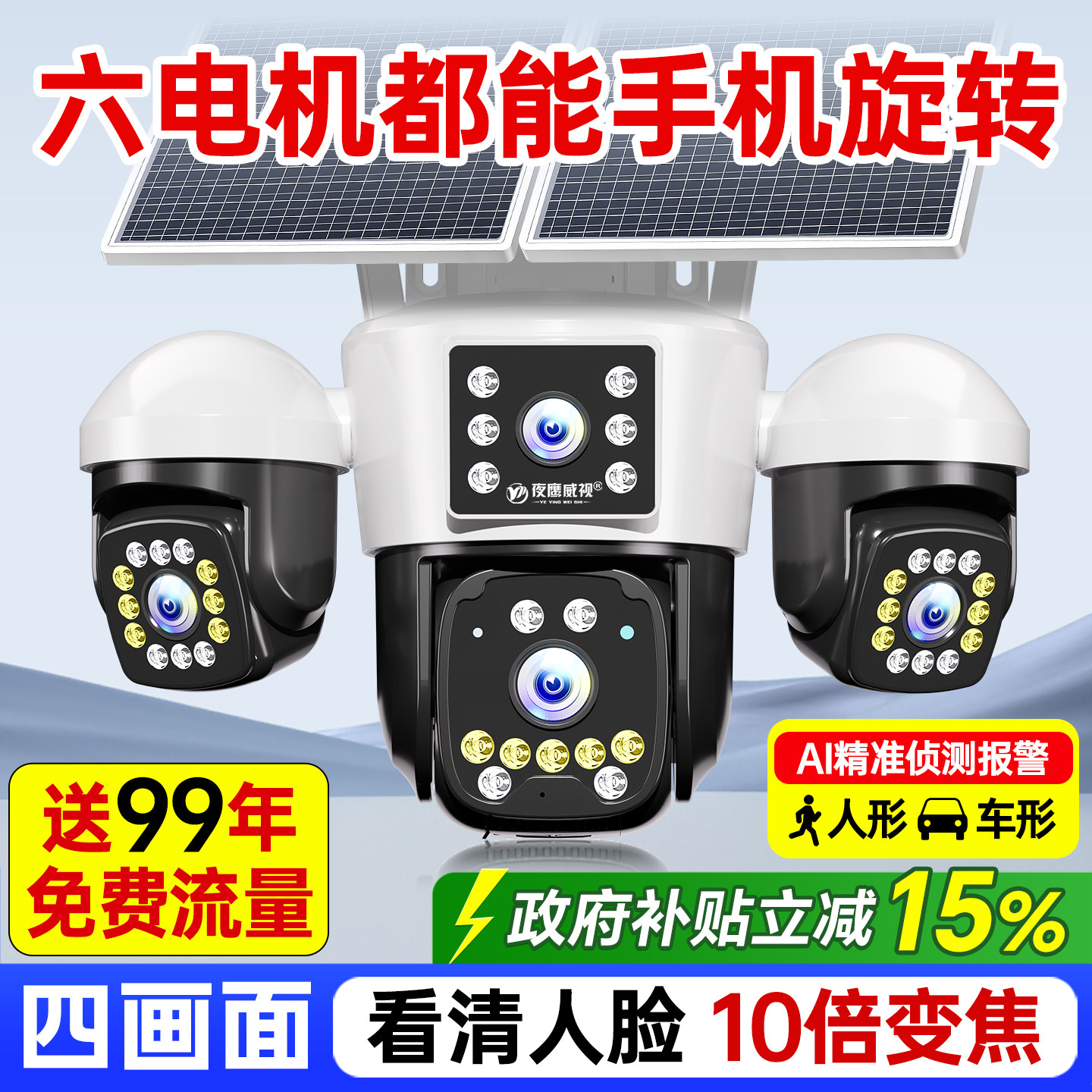 天太阳能监控摄像头超清变焦360度无死角手机远程室外免流量监控器