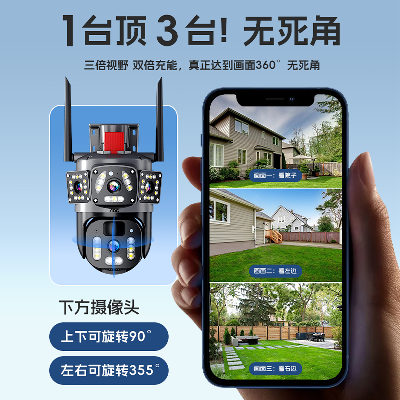 360室外摄像头监控器家用户外手机远程门口无线网络360全景摄影头