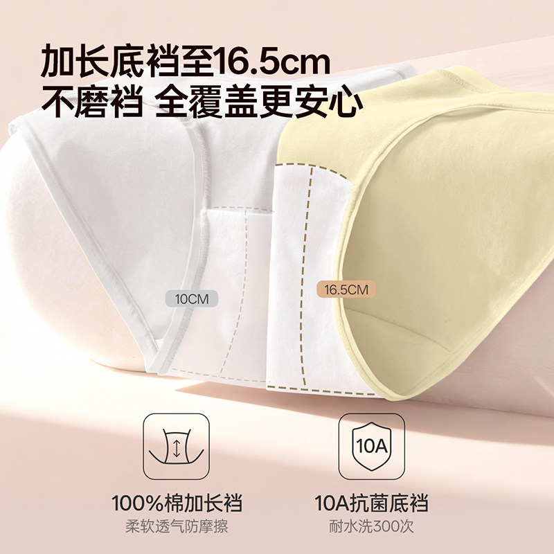 天猫幸棉内裤女士纯棉10A抗菌加长裆新款透气无痕中腰少女生三角短裤