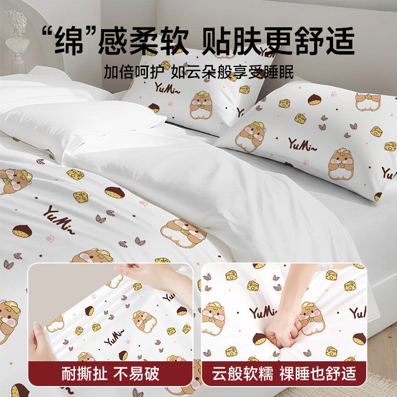 美力城一次性床上四件套抗菌床单被罩枕套旅行住酒店火车加厚床品