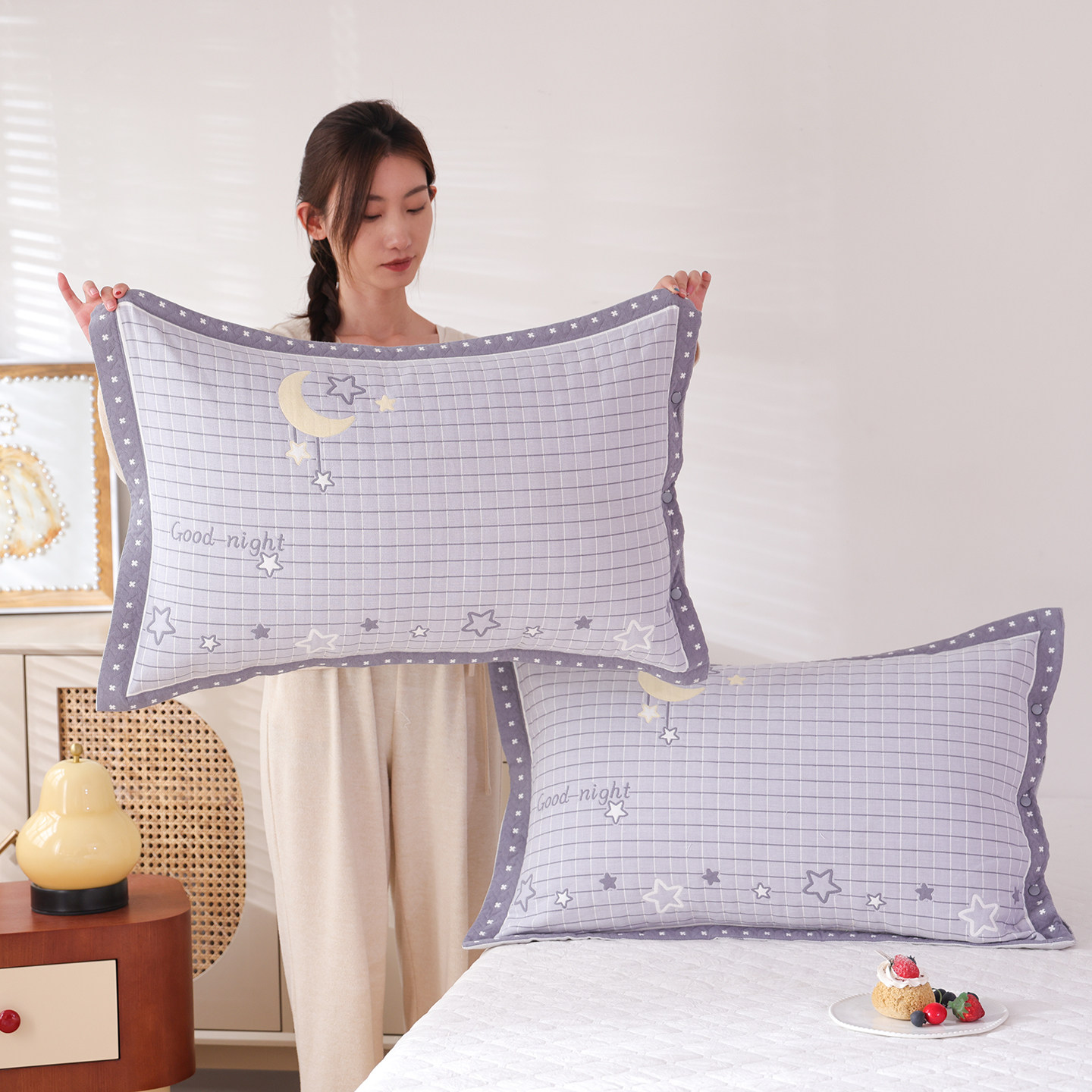 按扣八层纯棉纱布枕套一对装四季新款加厚柔软家用全棉枕头内胆套