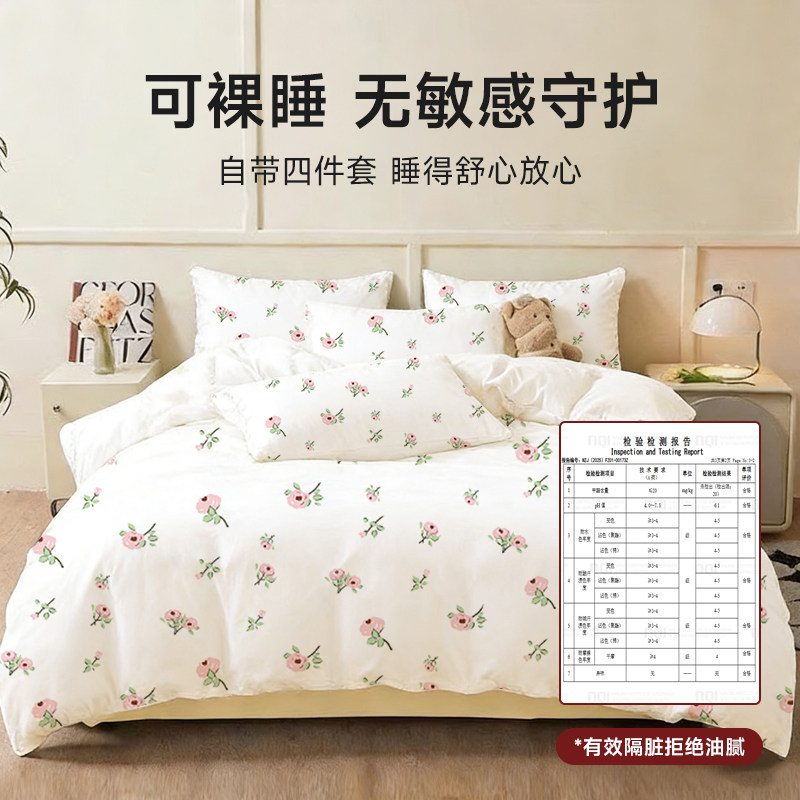 A类100%纯棉一次性床上四件套床单被套枕套被罩全棉加厚旅行酒店
