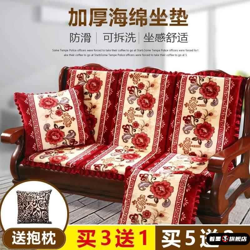 天猫包邮单人座实木沙发垫防滑加厚海绵红木沙发坐垫带靠背连身木椅垫