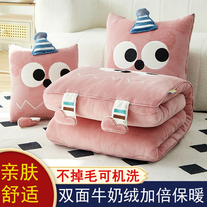 淘加厚牛奶绒抱枕被子两用办公室午睡毯学生宿舍盖被汽车载靠垫加厚