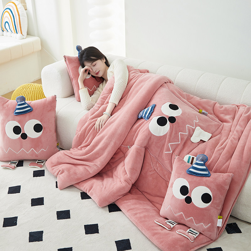 加厚牛奶绒抱枕被子两用办公室午睡毯学生宿舍盖被汽车载靠垫加厚