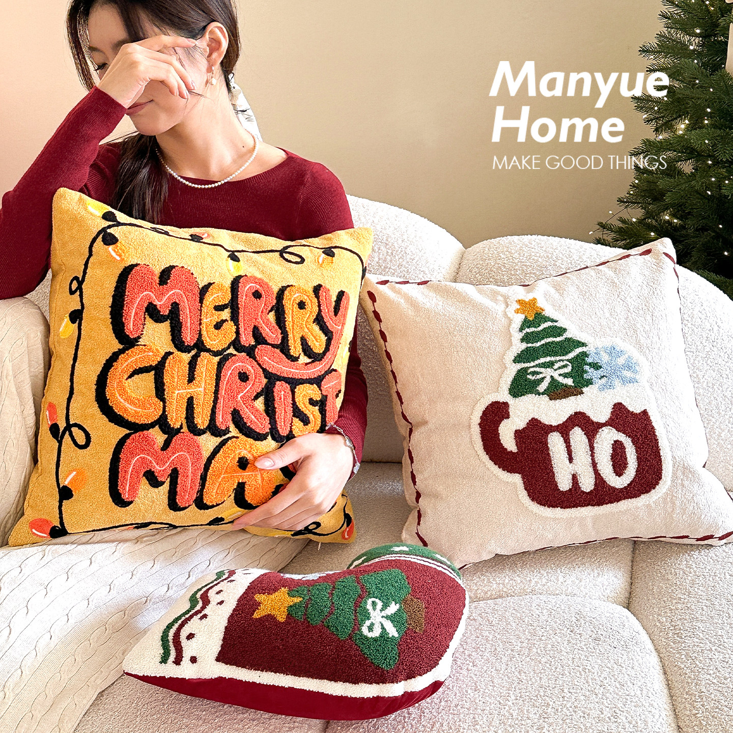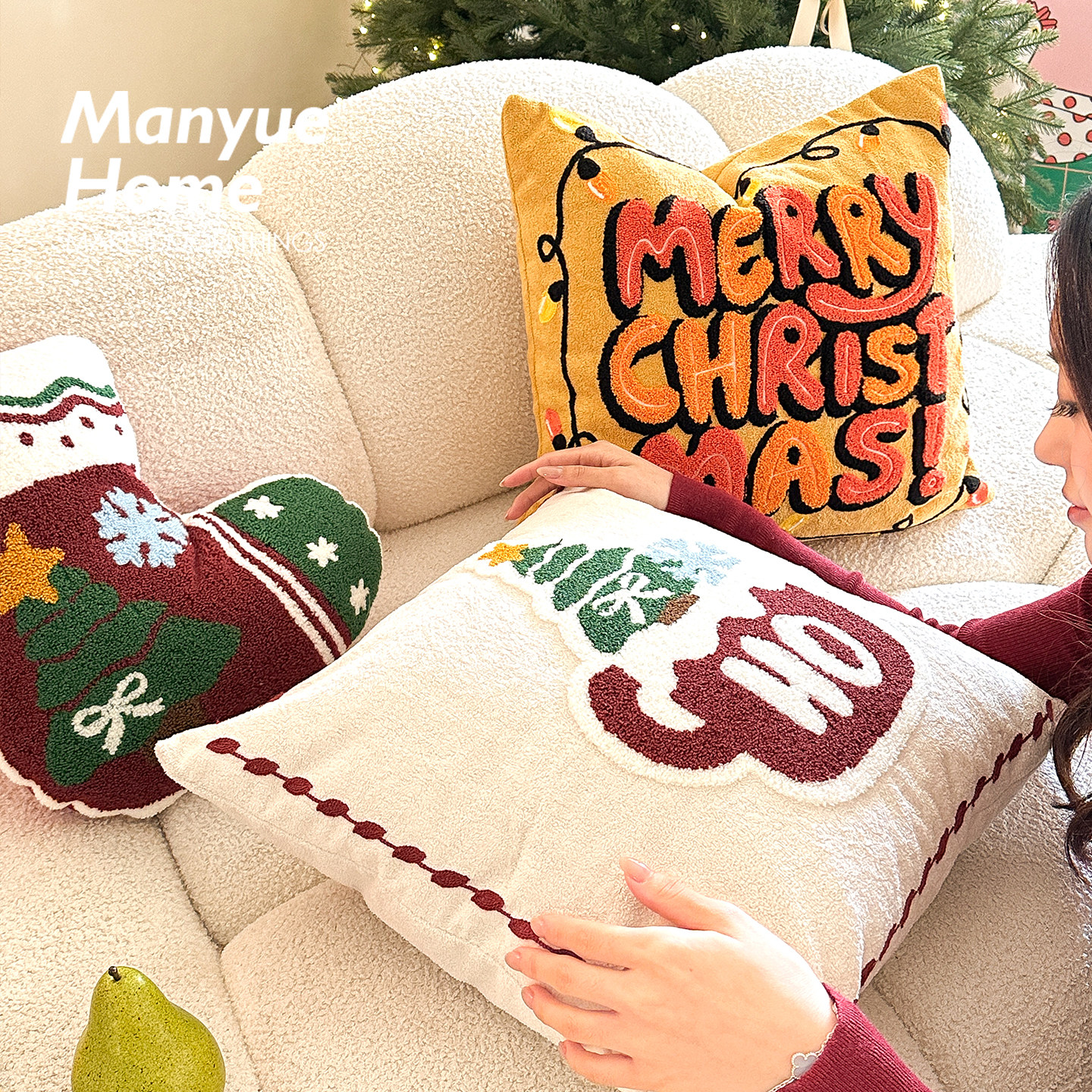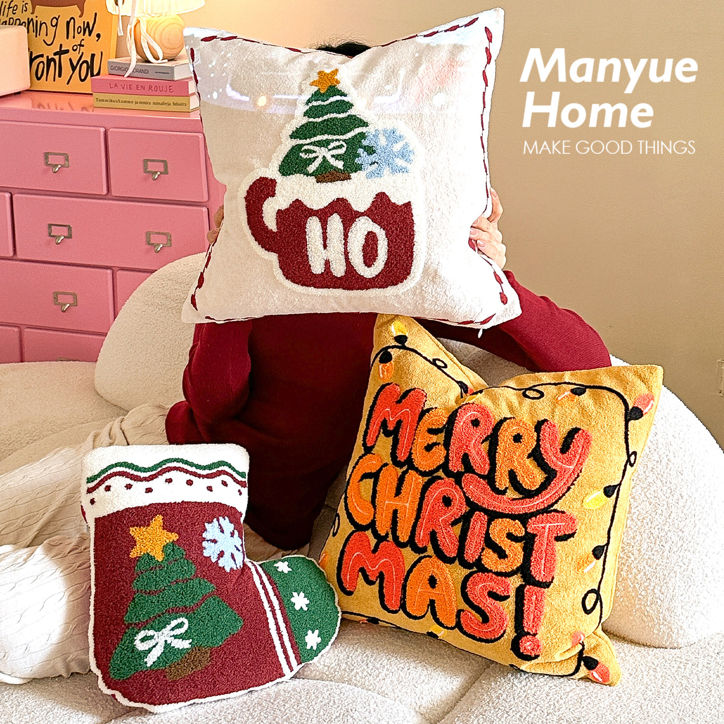 淘宝蔓越家 客厅沙发圣诞抱枕靠垫床头靠垫毛巾绣腰枕靠背抱枕套含芯