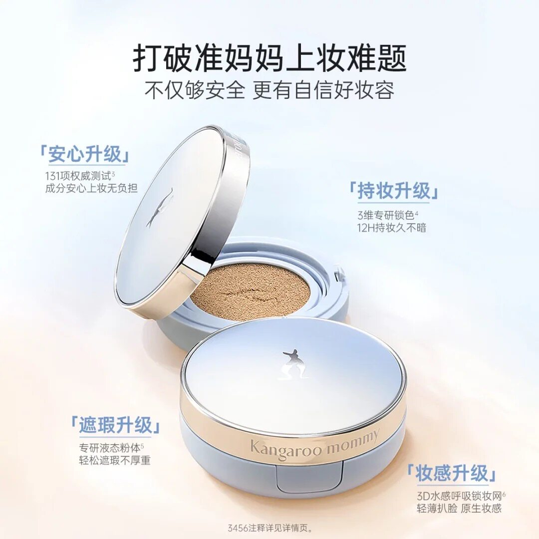 袋鼠妈妈燕窝气垫霜是一款专为孕期及哺乳期女性设计的轻薄彩妆产品,融合天然燕窝精华,温和滋养肌肤。其质地轻盈水润,延展性强,上脸后自然贴合,打造清透裸妆感。具备中等遮瑕力,有效修饰毛孔、痘印与暗沉,同时不厚重、不卡粉。SPF防晒值提供日常防护,持久锁妆技术确保全天候不脱妆、不斑驳。气垫设计便捷卫生,轻轻一拍即可均匀上妆,补妆也轻松。成分安全无刺激,不含酒精、香精与孕妇慎用成分,呵护敏感肌肤。无论是日常通勤还是外出约会,都能让你拥有自然透亮、持久服帖的精致妆容。