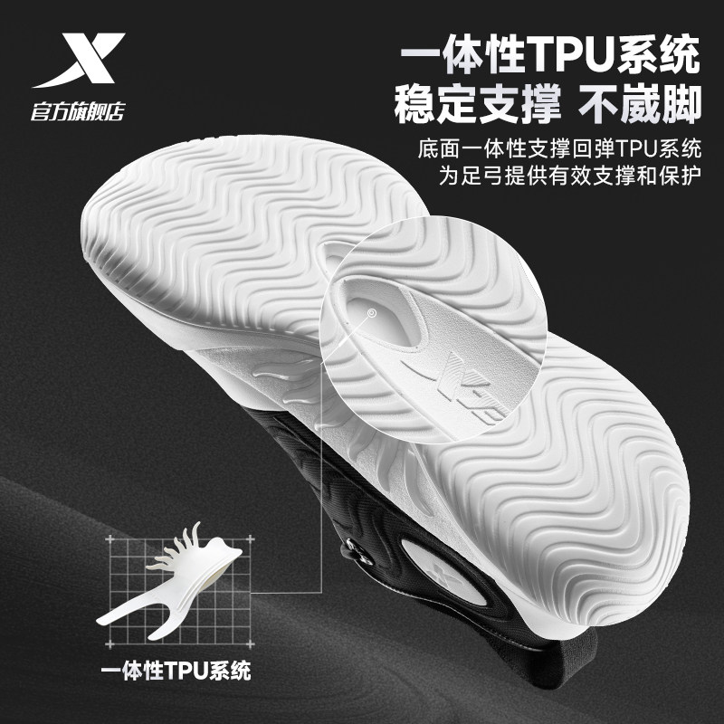 特步逆天二代|SKY02篮球鞋专为冬季实战打造,是后卫球员的理想战靴。采用低帮设计,兼顾灵活性与脚踝自由度,助力快速变向与突破。鞋面搭载高强度透气网布与热熔支撑片,轻盈包裹且抗撕裂;中底配置特步专属动力巢科技,提供卓越缓震与能量反馈,提升起跳爆发力。外底运用多向防滑橡胶纹路,增强抓地力,适应室内外多种场地。冬季加绒内里设计,保暖舒适,无惧寒冷。整体造型简约动感,兼具实战性能与潮流外观,是追求速度与稳定性的篮球爱好者冬季训练与比赛的优选装备。