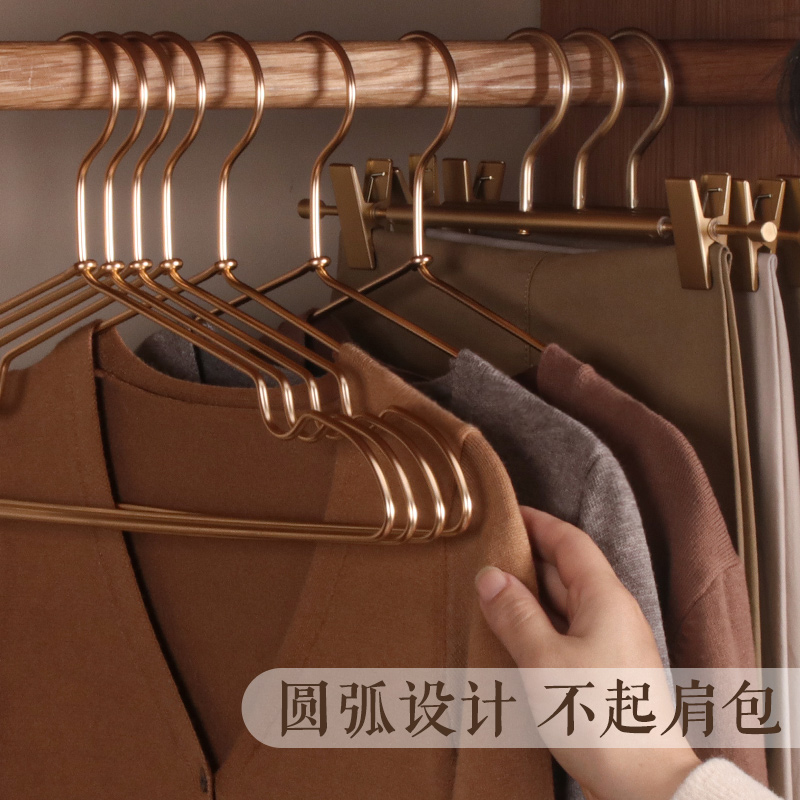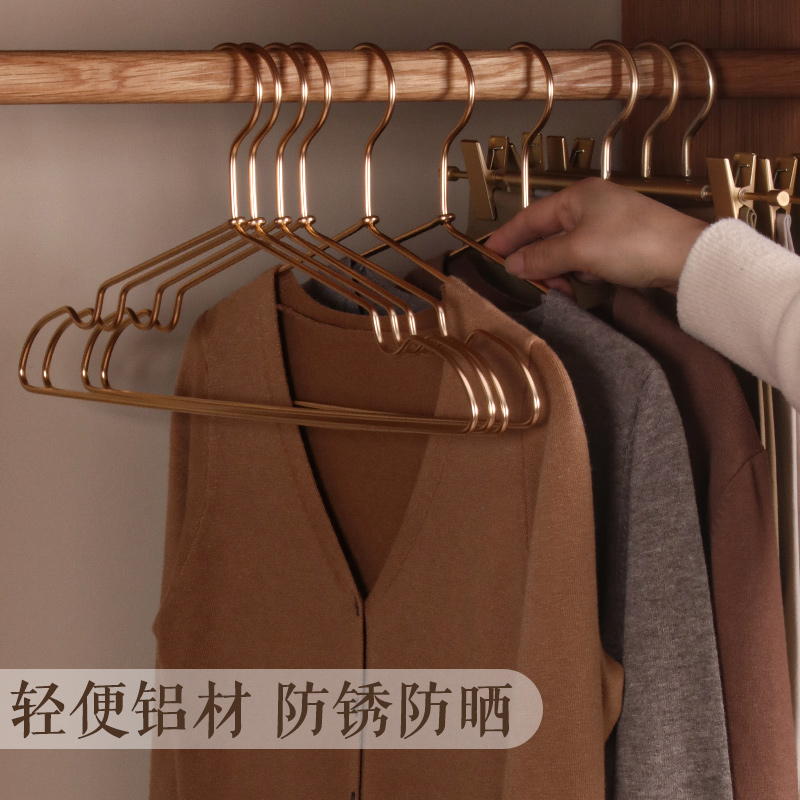 太空全铝合金衣架无痕实心加粗加厚家用挂衣金属衣撑轻奢衣柜专用