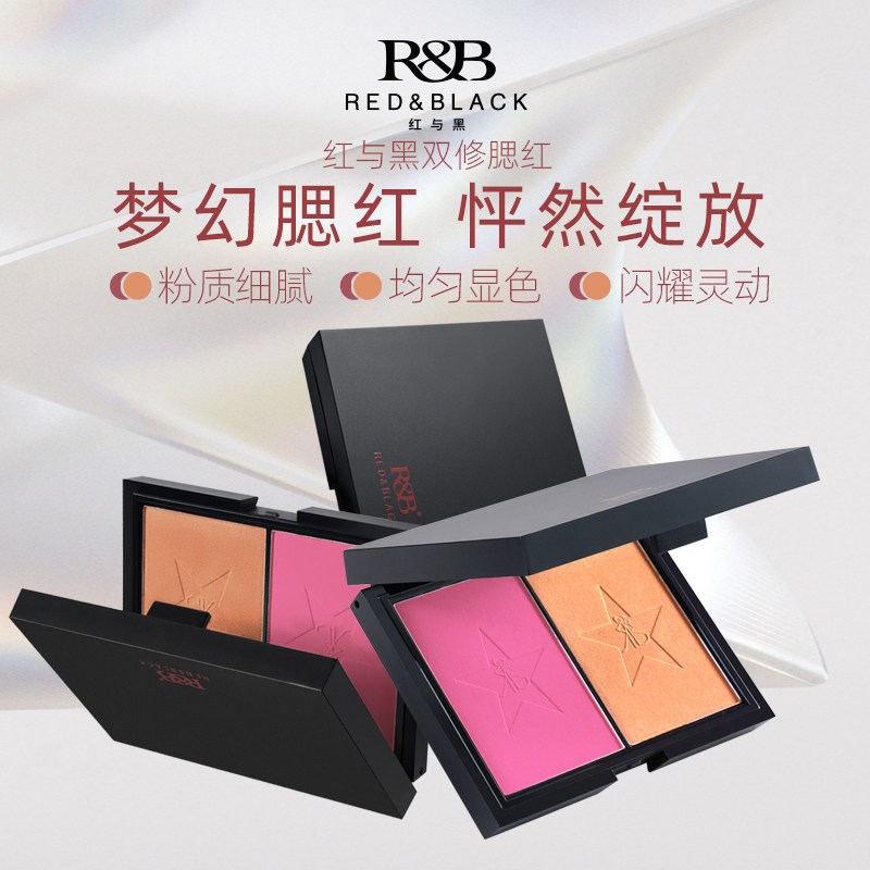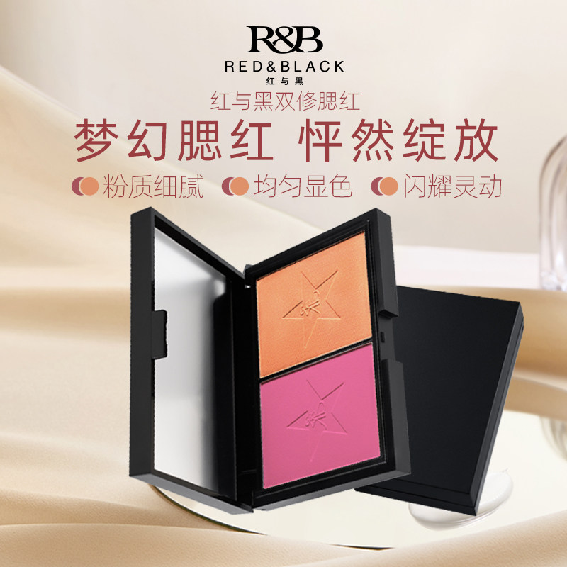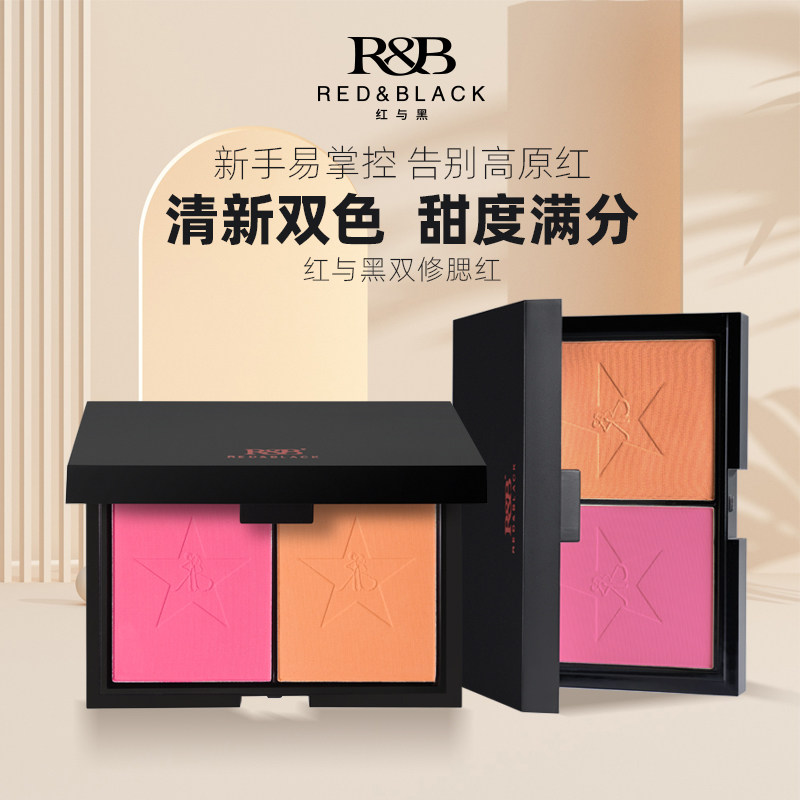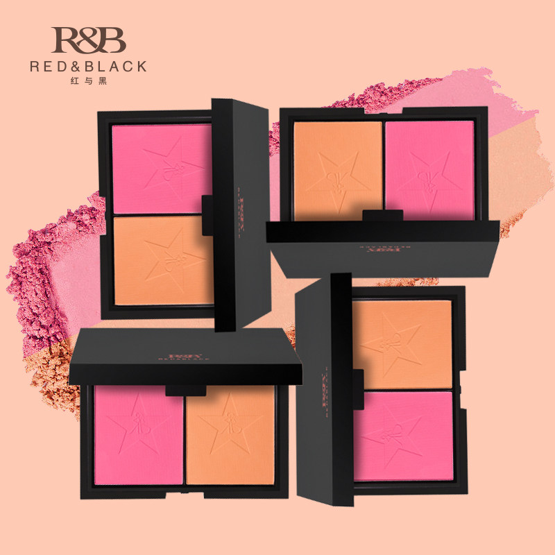 天猫红与黑双色腮红盘女哑光大容量膨胀色粉色橘色高光修容收缩一体盘
