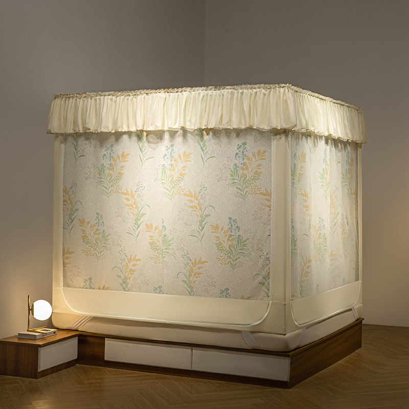 淘宝加厚遮光蚊帐加密回底坐床三开门家用拉链方帐防偷窥床帘烤漆支架