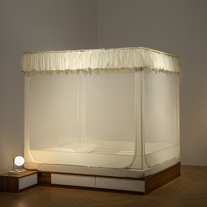 淘坐床式家用遮光蚊帐床帘一体式1.5米1.8床全封闭拉链蒙古包防尘顶