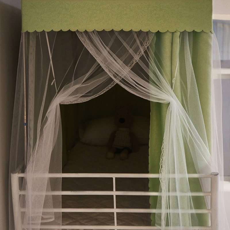 学生宿舍专用拉链蚊帐三开门100%物理强遮光上铺加厚支架坐床帘款