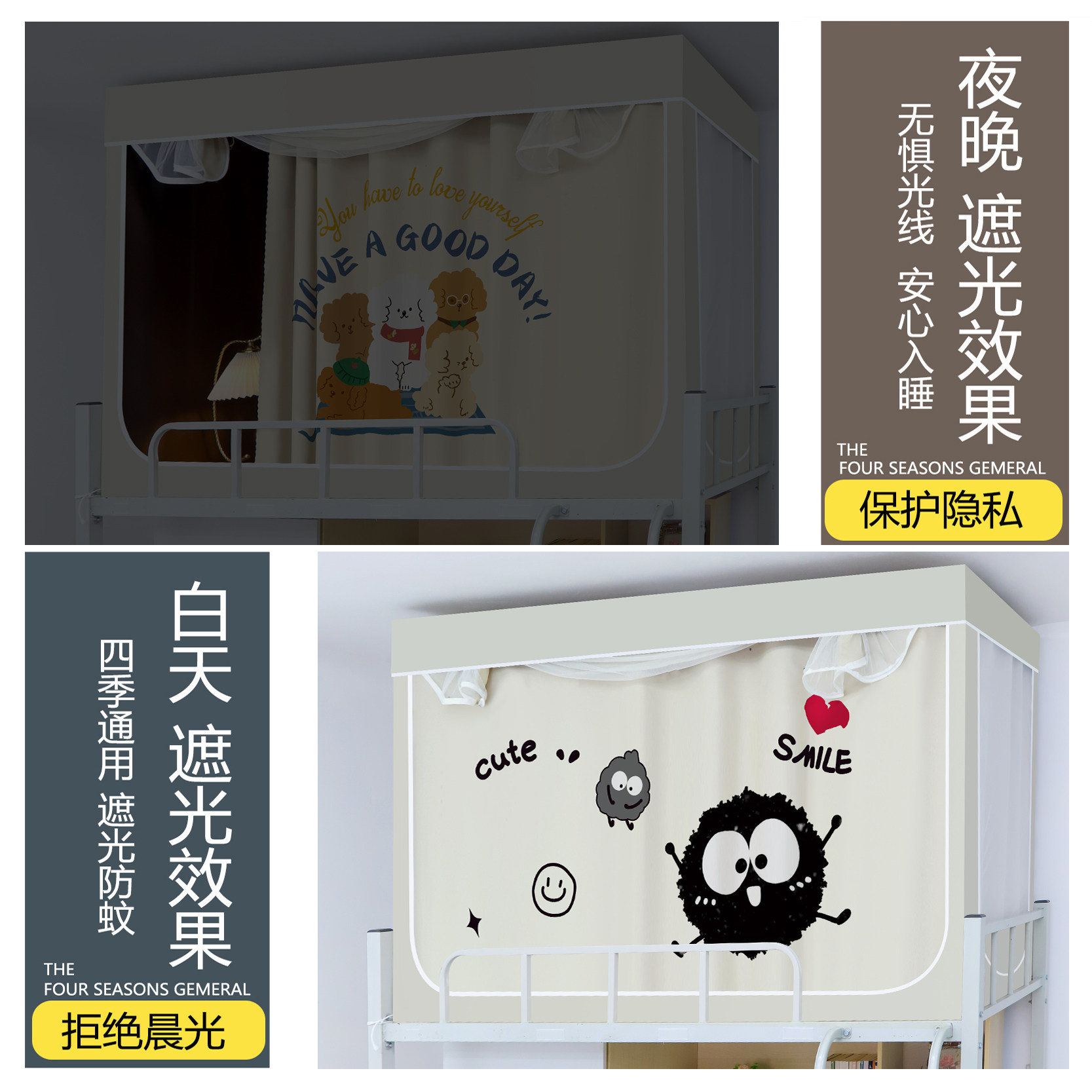 这款非涂层新款学生宿舍床帘,集遮光、防蚊、隐私保护于一体,专为上下铺设计。采用高密度透气面料,不含化学涂层,安全环保,久用不褪色、不释放有害物质。全包式结构严密包裹床体,有效阻挡光线,营造舒适睡眠环境;同时兼具蚊帐功能,防蚊透气两不误。顶部内置弹力带与挂钩,安装简便稳固,适配多种床铺尺寸。简约纯色设计,美观实用,不占空间,是学生寝室提升生活品质的贴心之选。无论是遮光休息还是个人隐私,都能轻松满足,让宿舍生活更安静、更舒适。