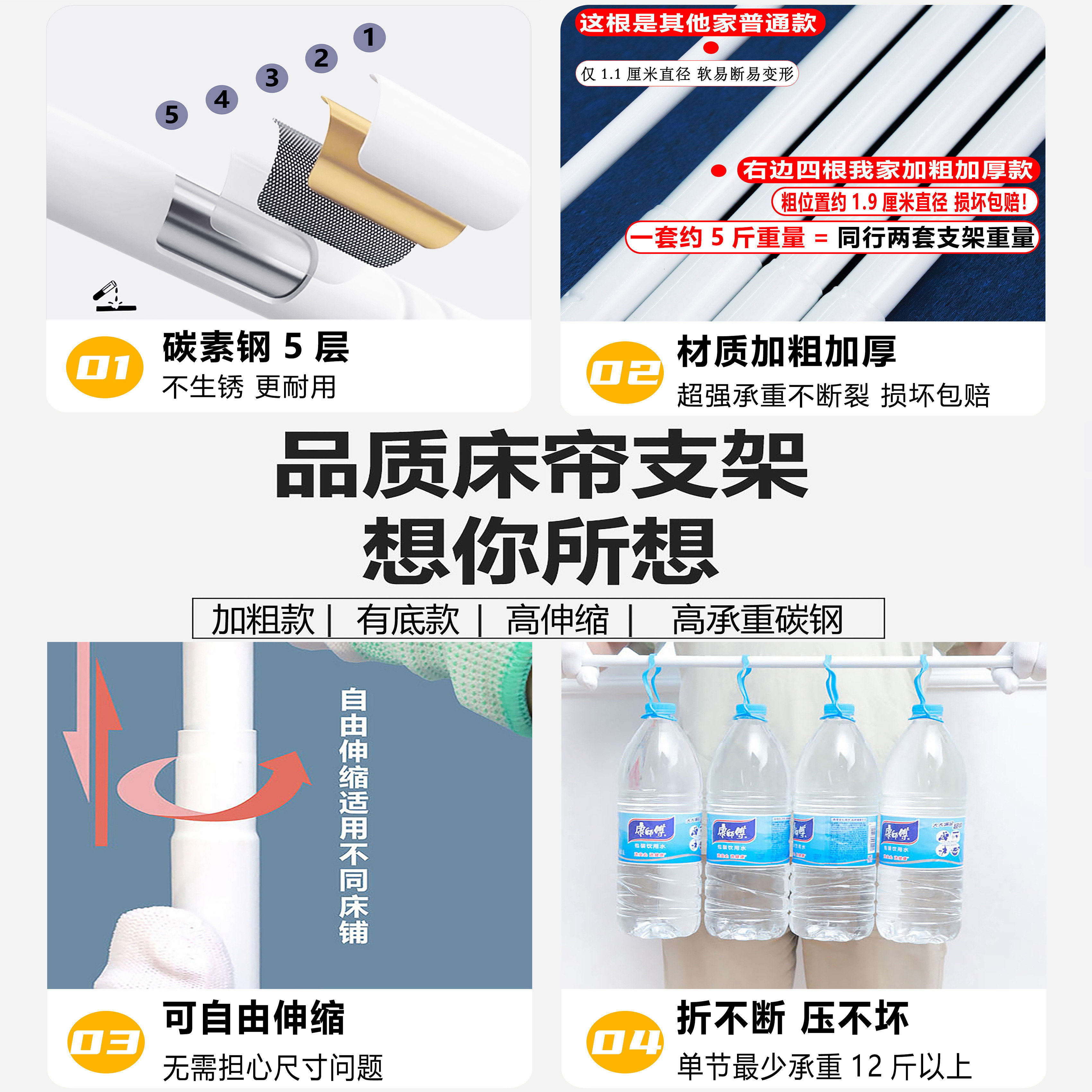 淘学生宿舍可伸缩床帘支架寝室上下铺蚊帐杆不锈钢架子床铺支撑杆子