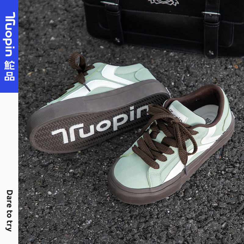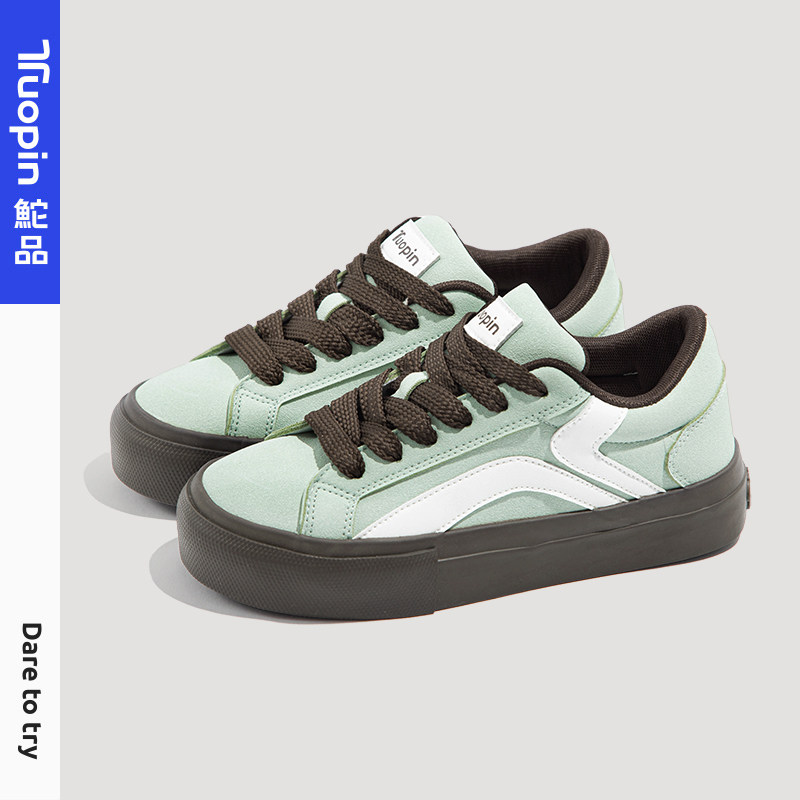 鮀品薄荷巧克力板鞋女2026春季新款,以清新薄荷绿与温润巧克力棕撞色设计,打造春日专属浪漫氛围。采用优质帆布材质,轻盈透气,搭配原创厚底设计,视觉显高又舒适耐穿。鞋型简约百搭,可轻松驾驭牛仔裤、裙装等多种风格,兼顾休闲与时尚。防滑橡胶大底增强抓地力,行走更安心。细节处融入品牌原创元素,彰显个性品味。无论是日常通勤还是周末出游,这款运动鞋都能为你增添活力与自信,是2026春季不可或缺的潮流单品。