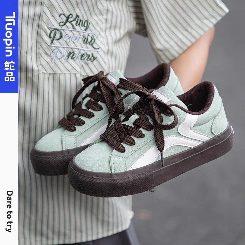 天猫鮀品薄荷巧克力板鞋女2026春季新款百搭厚底帆布鞋原创休闲运动鞋