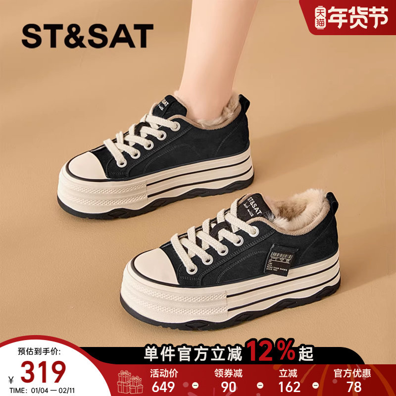 天猫星期六加绒厚底帆布鞋女2025冬季新款保暖松糕休闲板鞋增高运动鞋