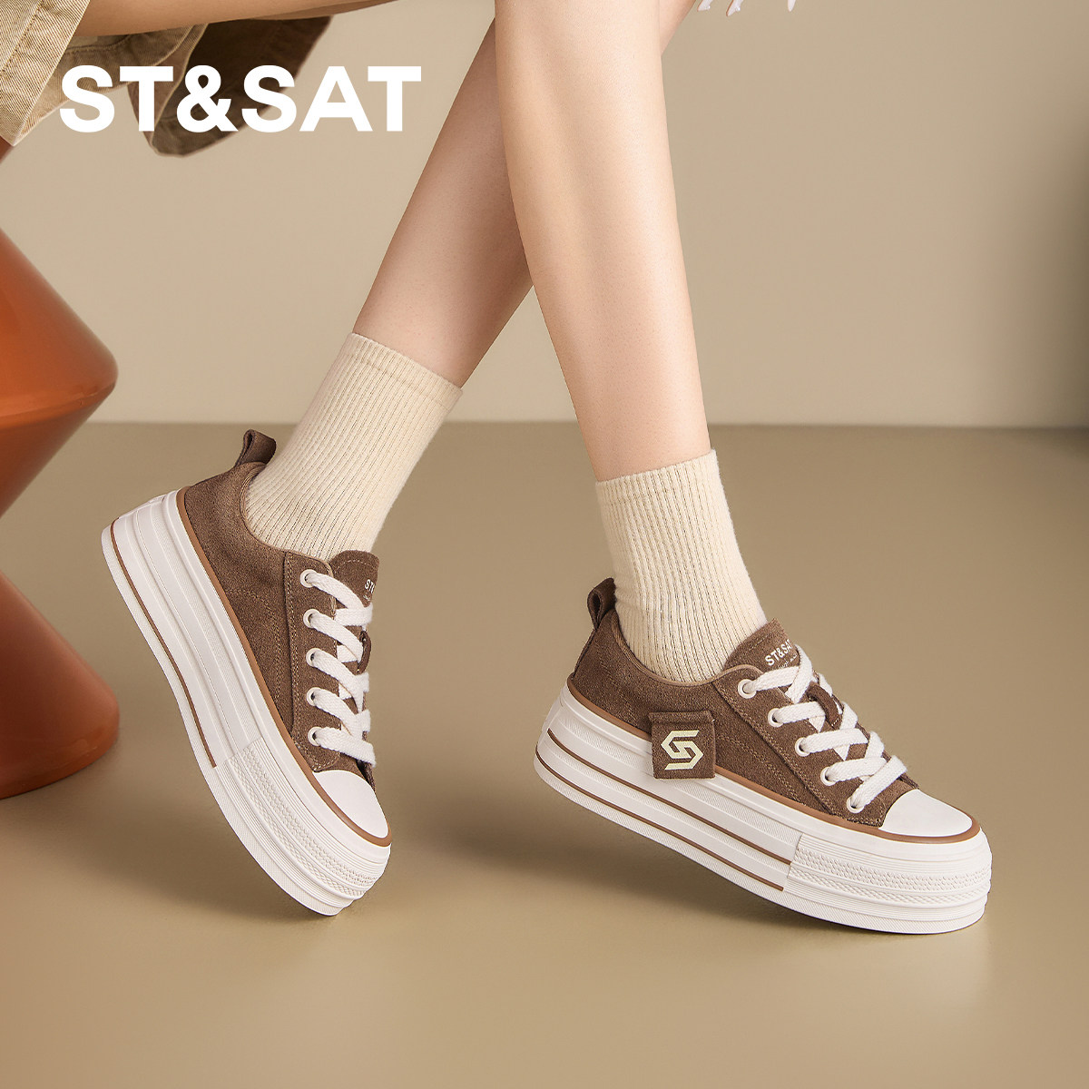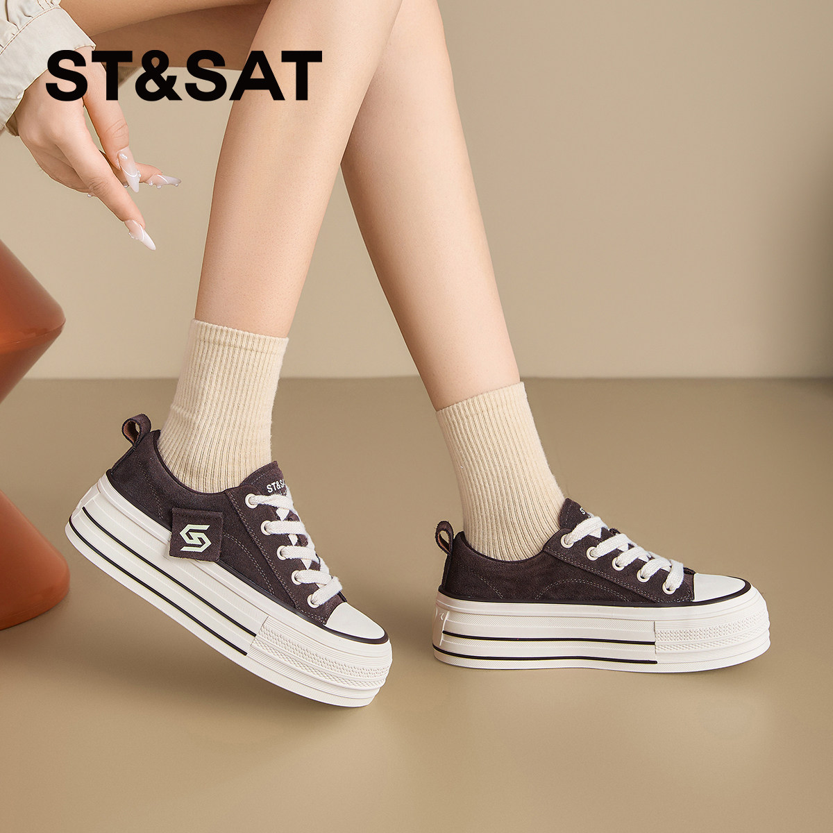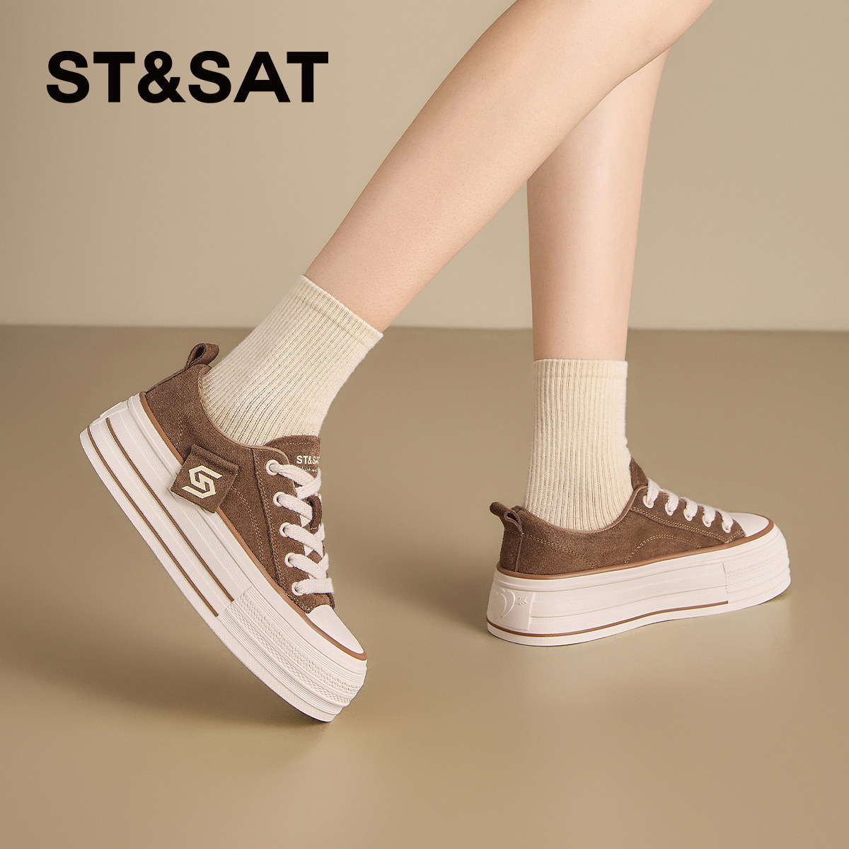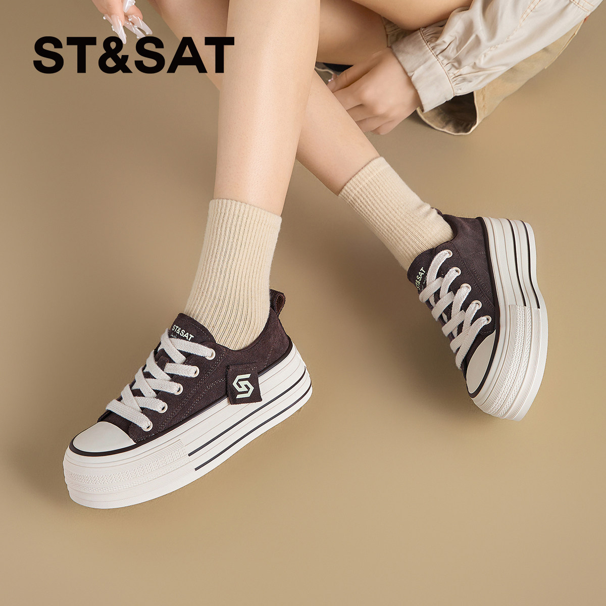 天猫星期六厚底板鞋女2025新款秋季复古帆布鞋时尚百搭休闲松糕小白鞋