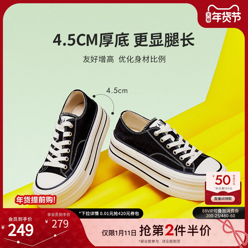 天猫TATA他她彩虹糖厚底帆布鞋女透气新款黑色板鞋休闲小白鞋WP801AM5