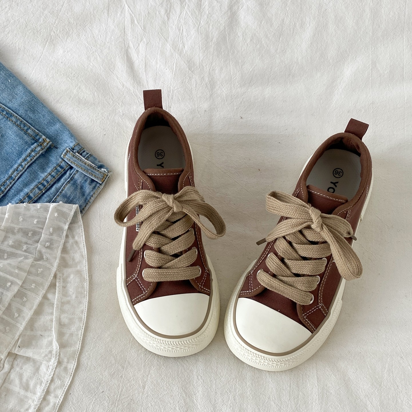 天鮀品薄荷巧克力板鞋女2026春季新款百搭厚底帆布鞋原创休闲运动鞋