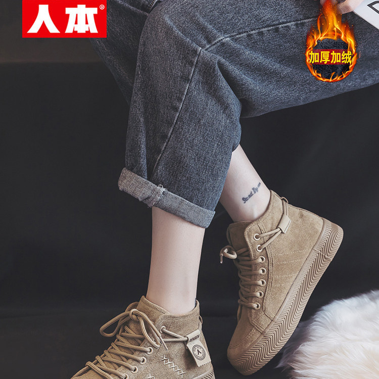 天猫人本棉鞋女2025年冬款高帮加绒保暖二棉鞋ins潮百搭厚底帆布鞋女