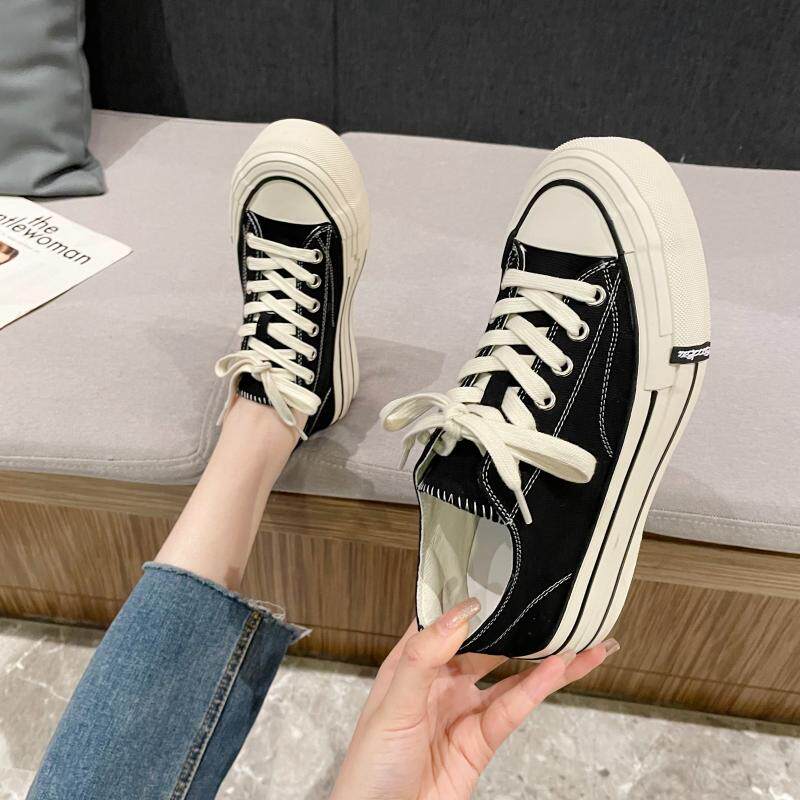 淘宝帆布鞋女鞋2025年新款春秋款学生百搭圆头厚底低帮系带休闲板鞋子