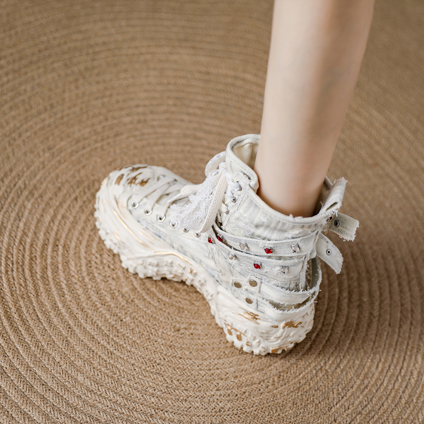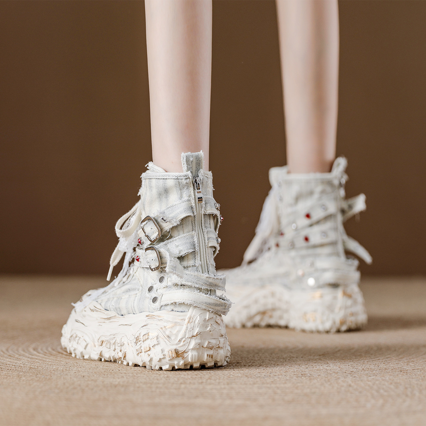 淘宝厚底高帮鞋女2025秋季新款帆布鞋爆款后拉链短靴时尚欧货马丁靴女