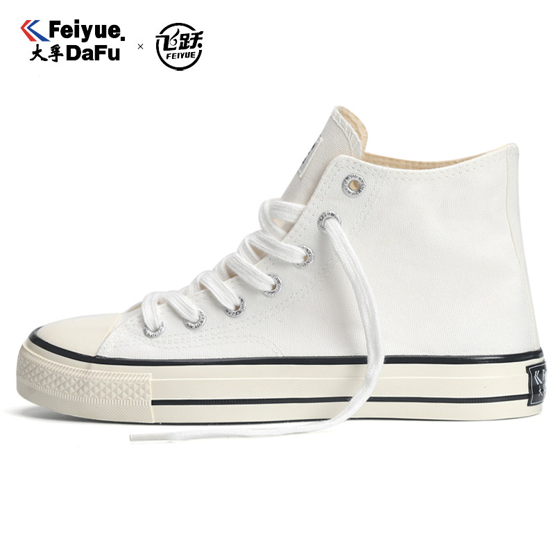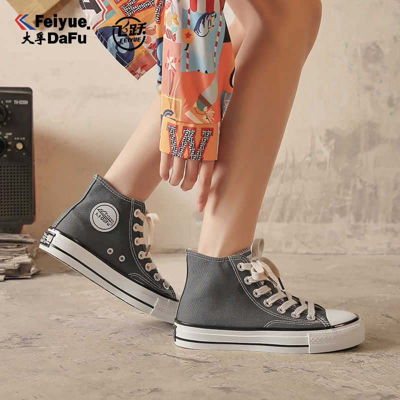 淘宝大孚飞跃春季新款高帮女鞋潮流百搭男鞋时尚飞跃纯色帆布鞋小白鞋