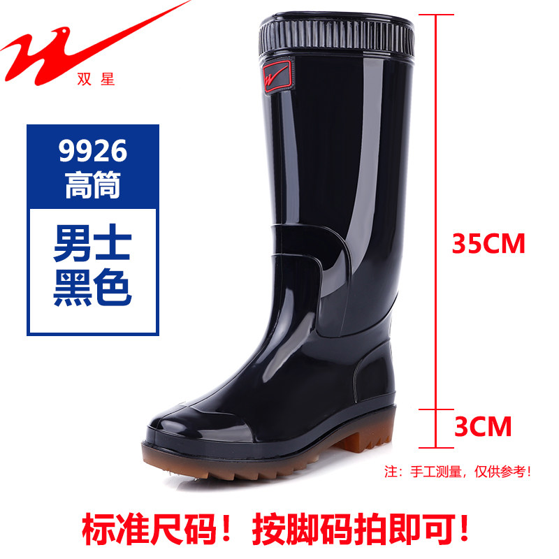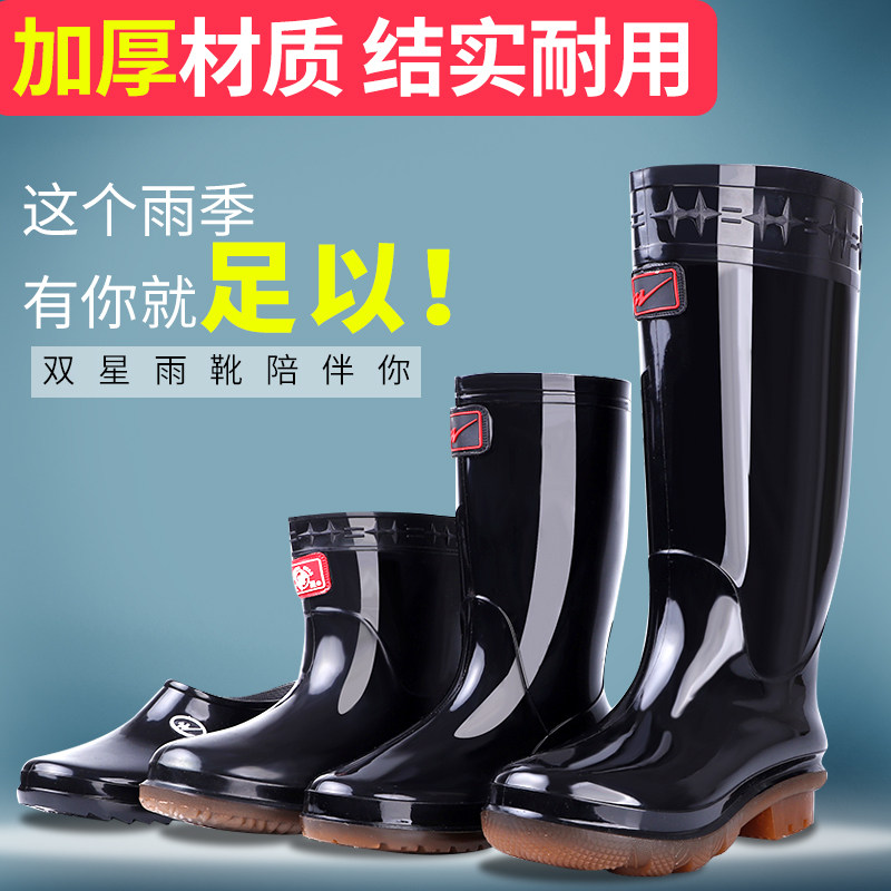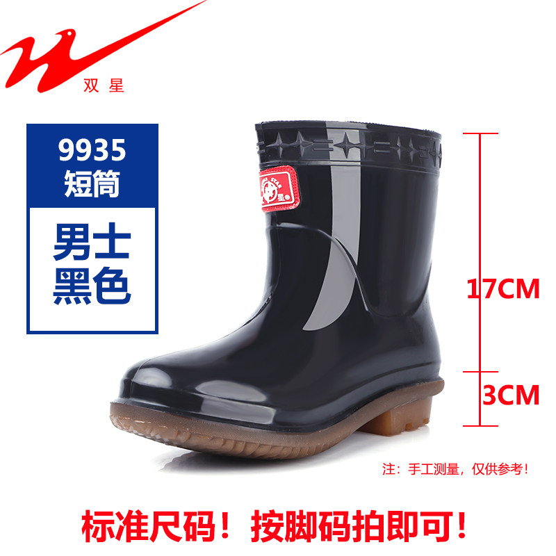 淘宝双星雨鞋男式中筒雨靴防滑水鞋水靴黑色高筒女式胶鞋劳保工作靴子