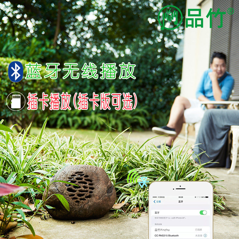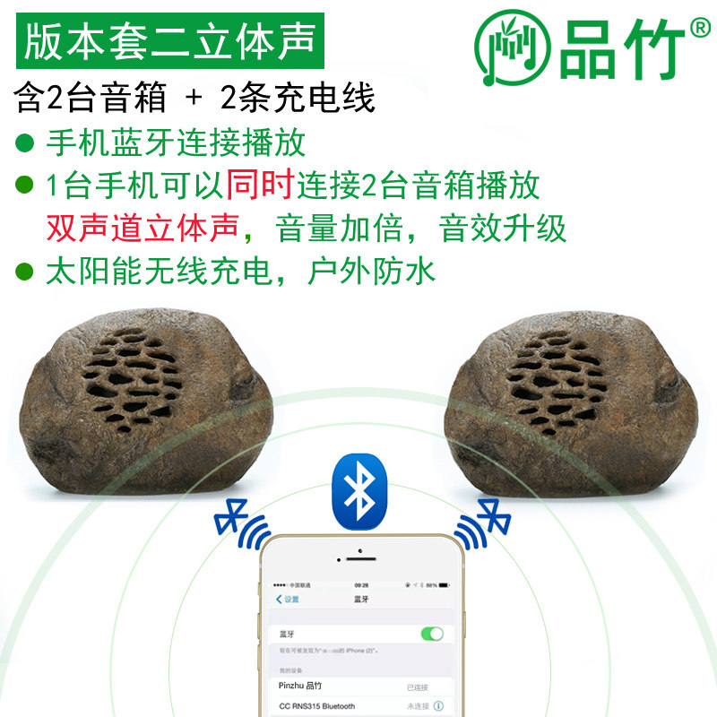 淘宝品竹太阳能蓝牙音箱花园音响户外防水遥控鹅卵石草坪音箱可插卡