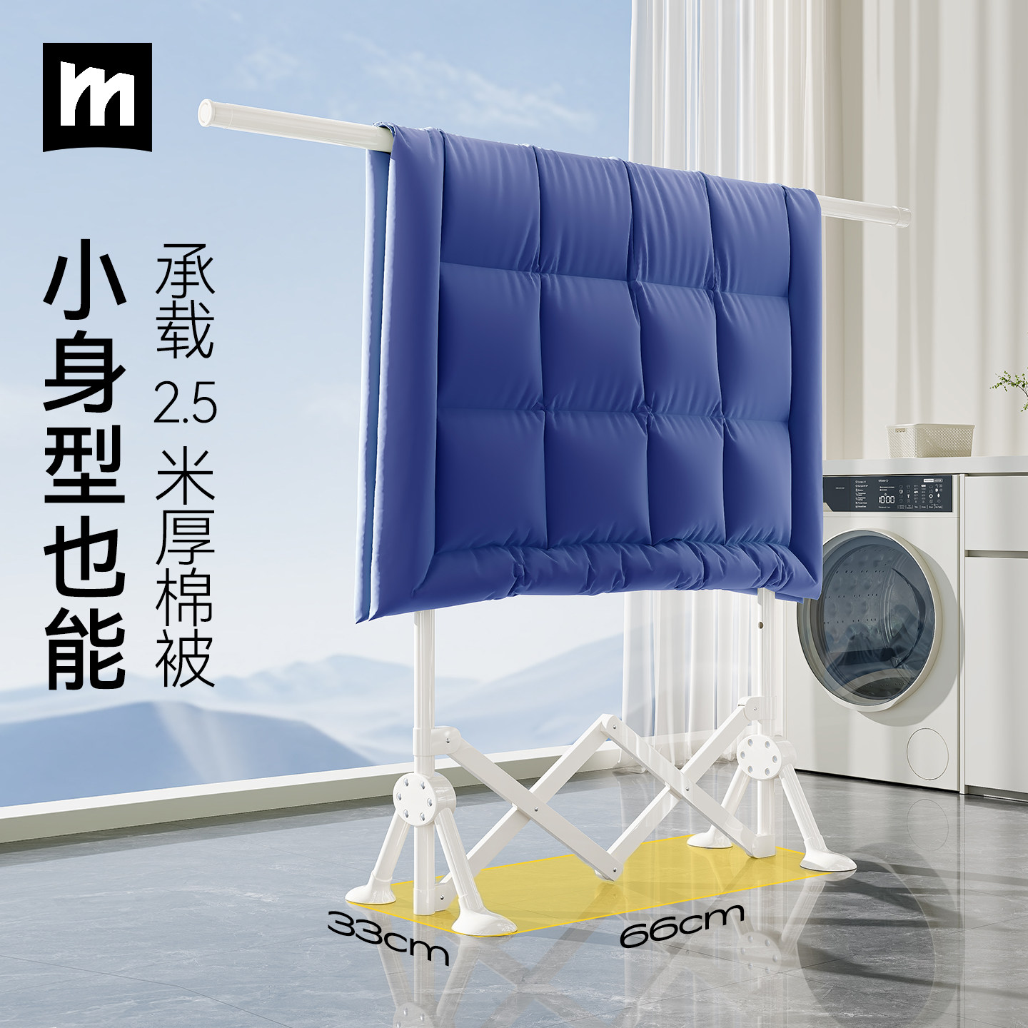 名至晾衣架落地折叠家用小阳台飘窗挂衣架室内晾晒伸缩晒被子神器
