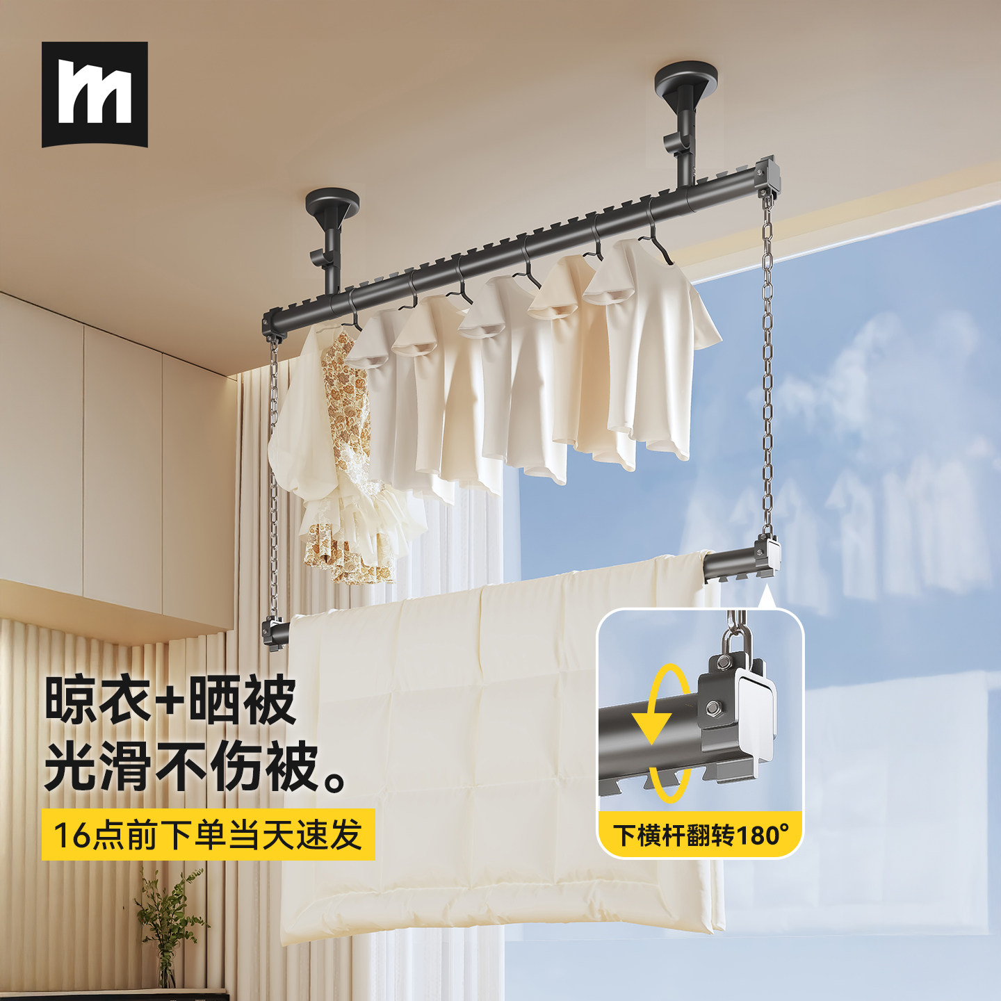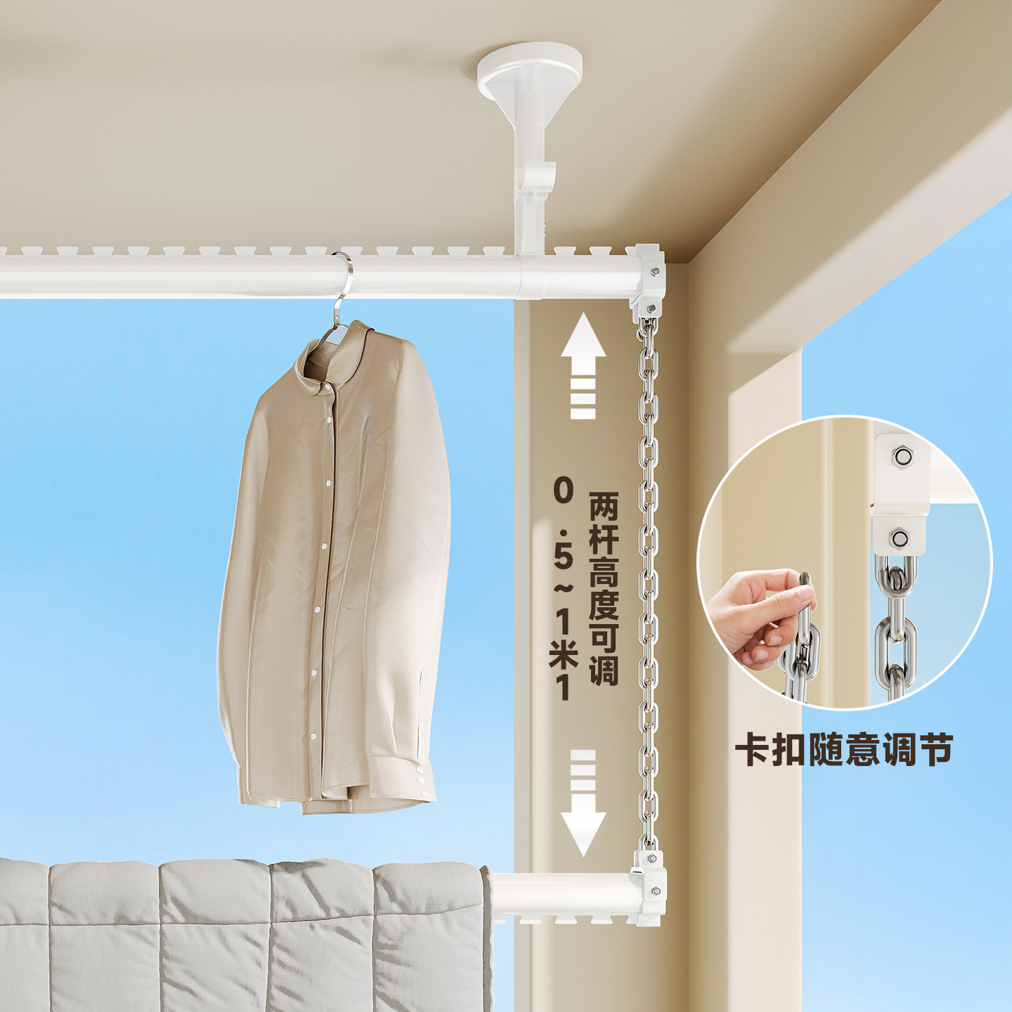 天猫政府补贴晾衣杆阳台固定式家用顶装晾衣架上下双层悬挂式侧装吊杆
