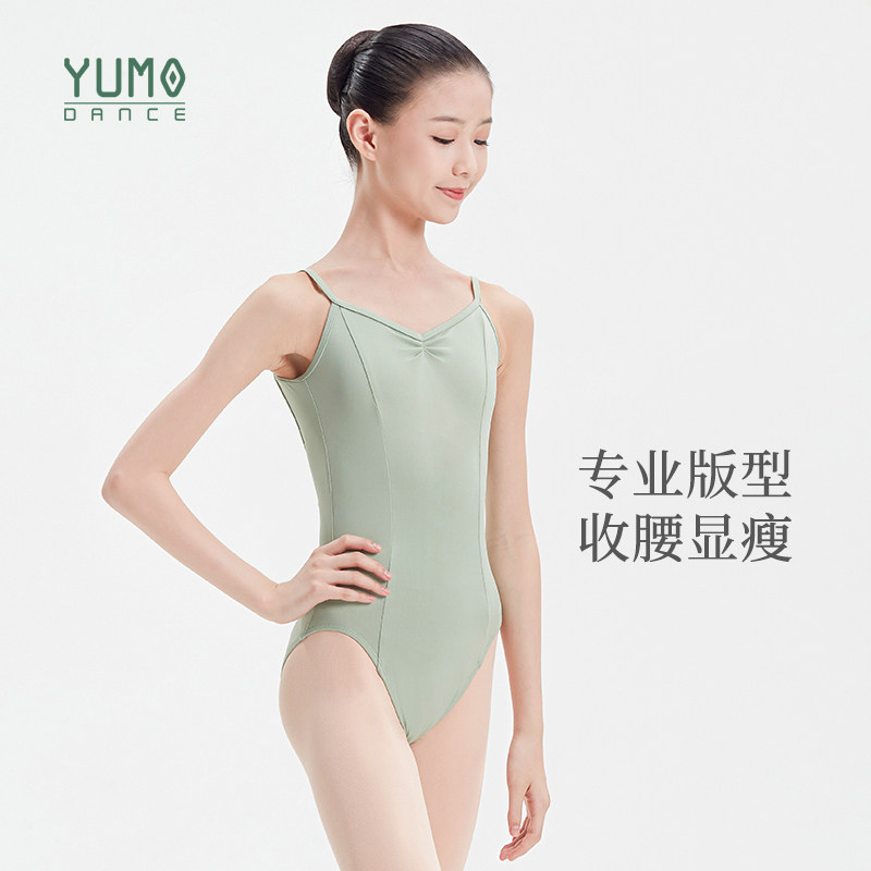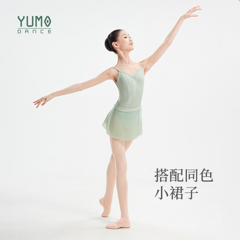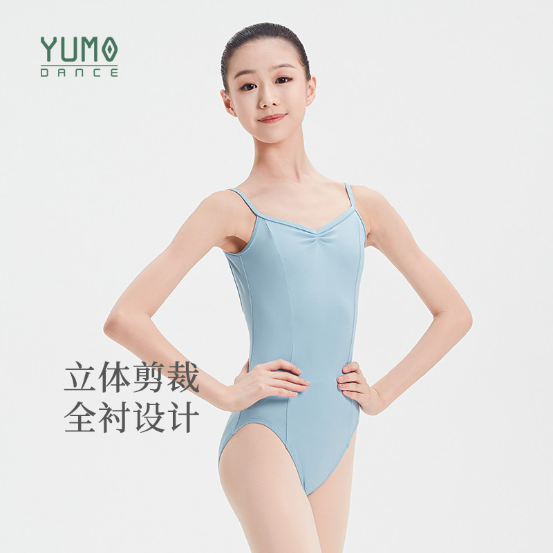 淘宝YUMO芭蕾舞蹈服儿童团体吊带大背舞蹈生练功形体服高胯基训连体服