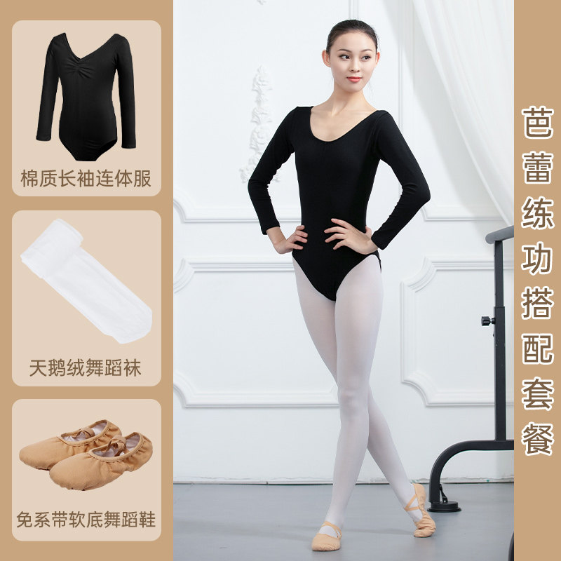 淘长袖舞蹈服女童成人春秋新款丝绒芭蕾舞连体形体服装考级练功服