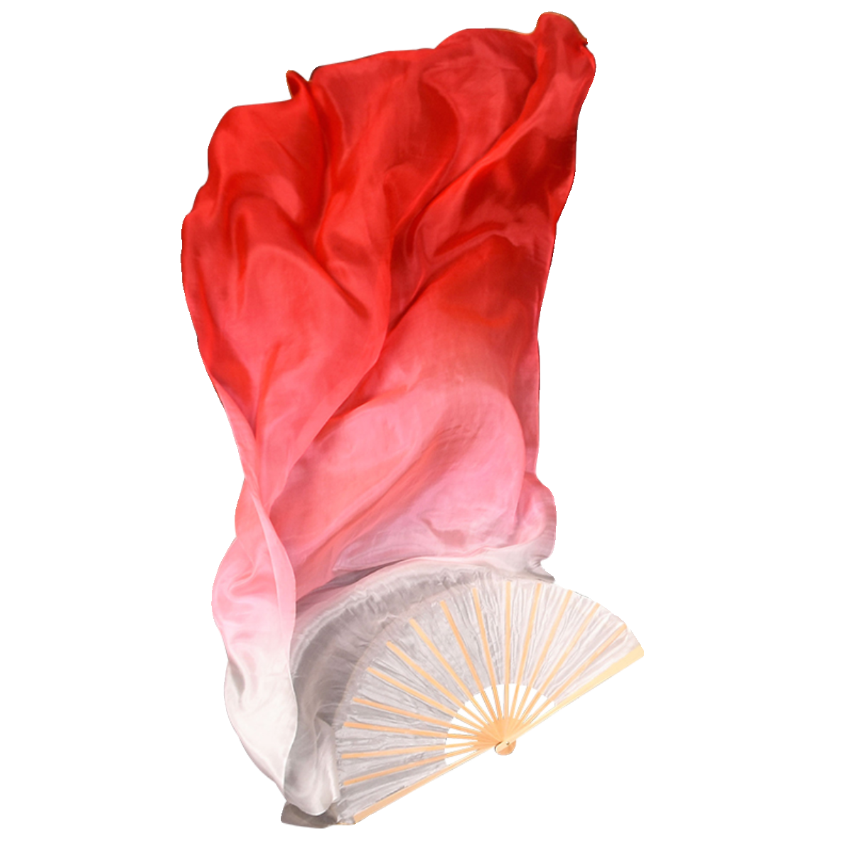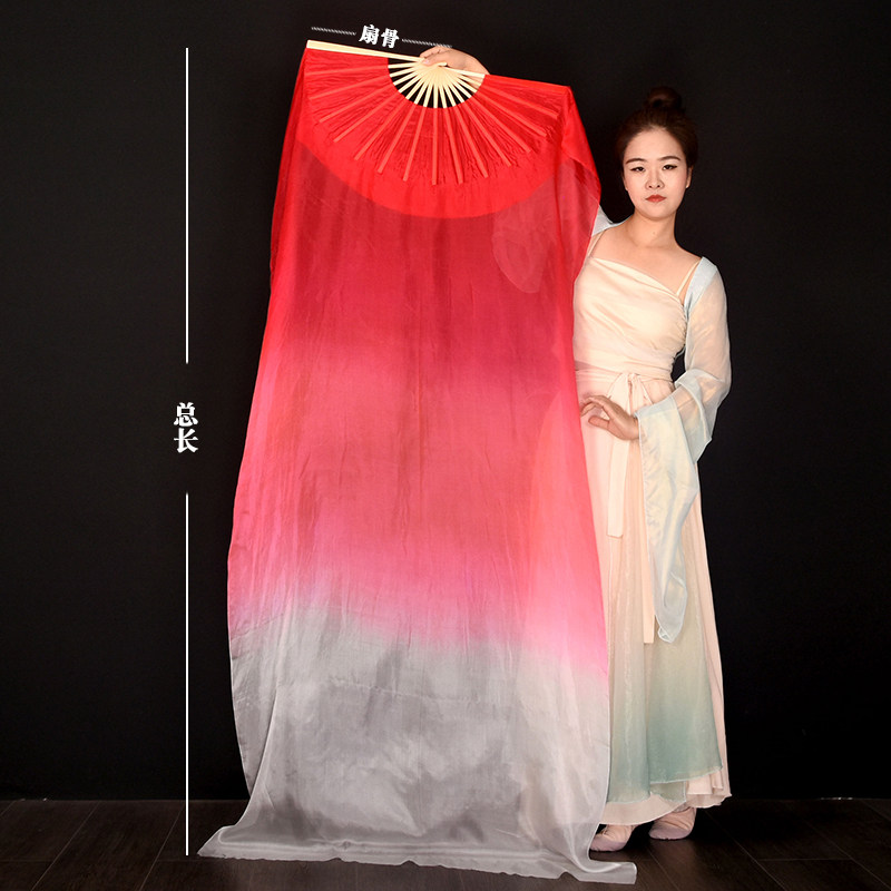 淘宝舞蹈扇子跳舞扇真丝大红渐变色万疆古典舞加长长飘中国风长绸扇子