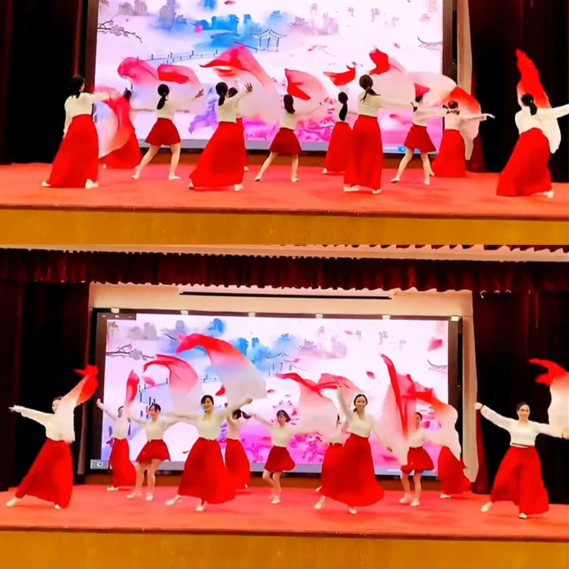 舞蹈丝巾纱巾专用大红色专用道具跳舞中国红年会舞台芳华绒花同款