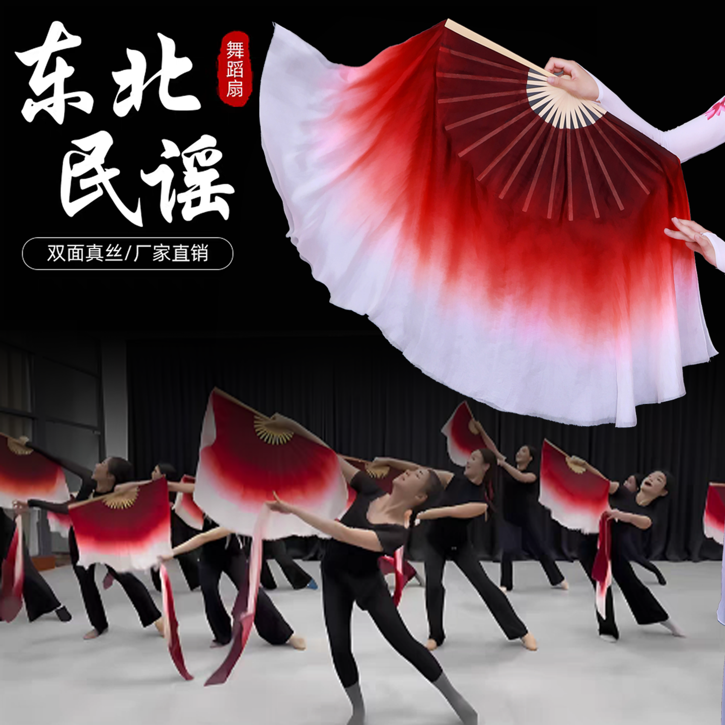 淘九儿双面大红色扇舞蹈扇红色渐变扇子胶州秧歌扇跳舞扇古典广场舞