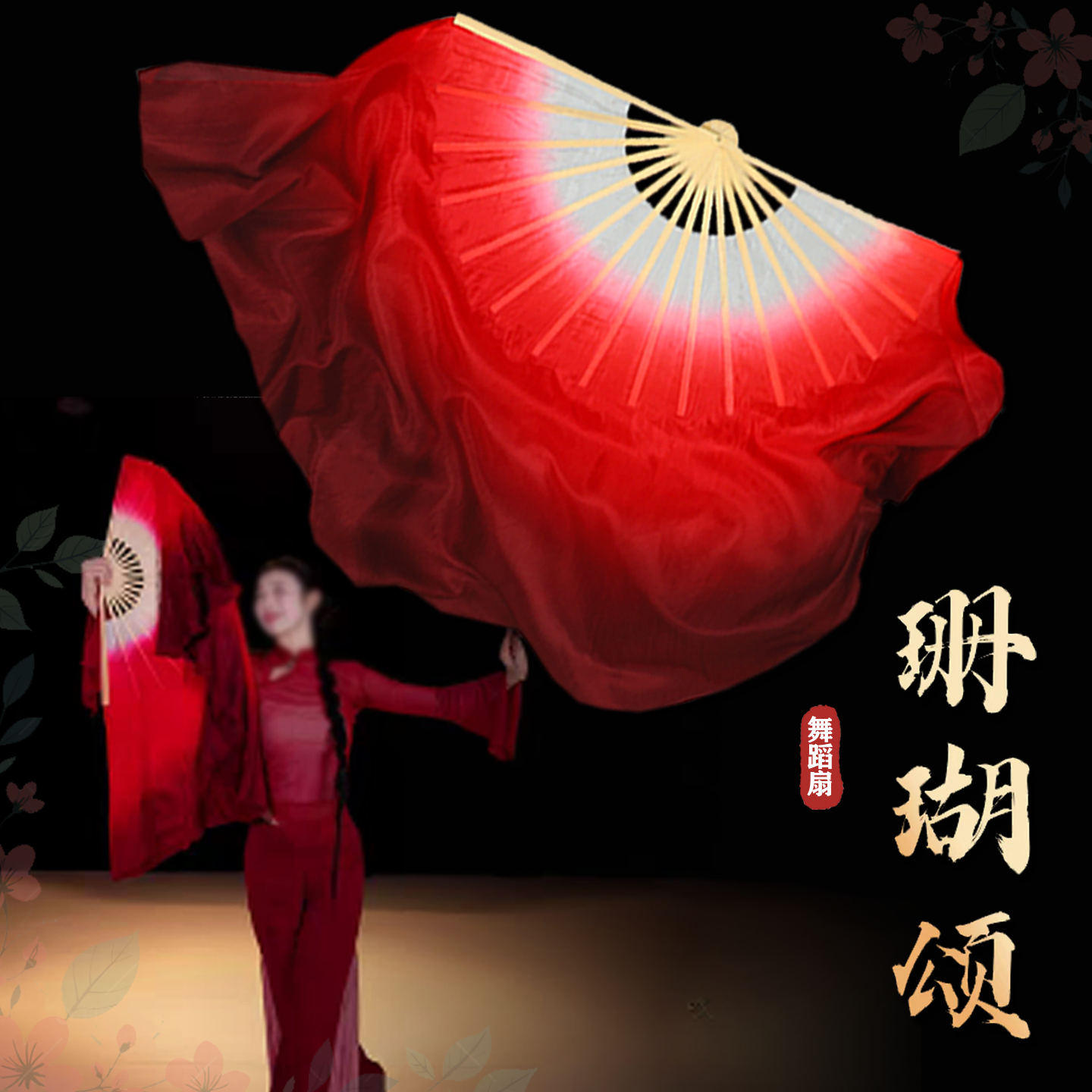 舞蹈扇子火焰扇加长扇跳舞扇三色渐变真丝扇广场舞长绸舞蹈扇长扇