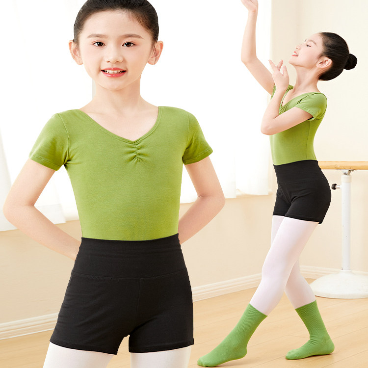 淘宝儿童毛衣舞蹈服一字领女童练功服春秋季小坎肩吊带短裤套装上衣女