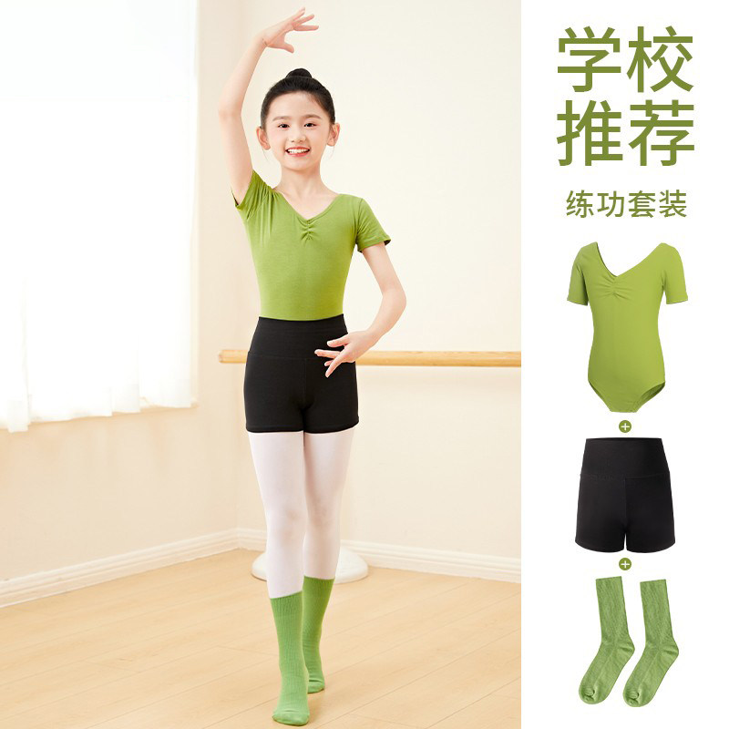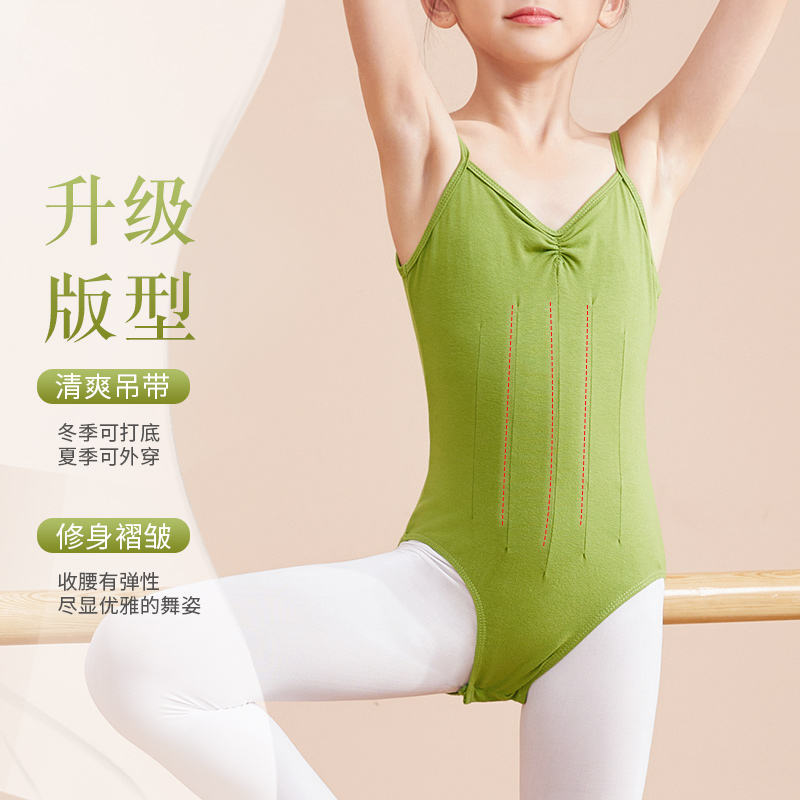 淘YUMO芭蕾舞蹈服儿童团体吊带大背舞蹈生练功形体服高胯基训连体服