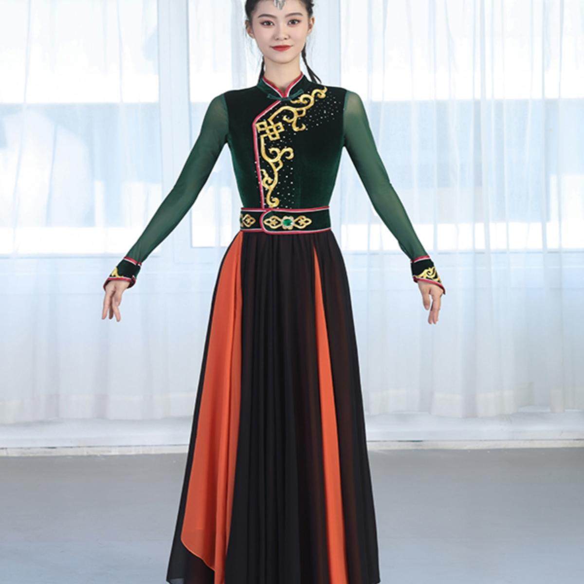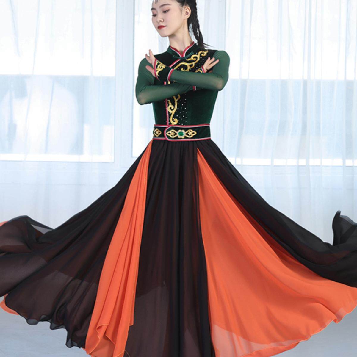 蒙古族新款舞蹈表演演出长裙剧目比赛定制舞蹈服饰蒙族女款大摆裙