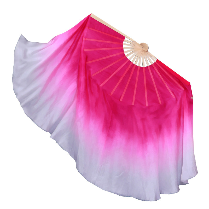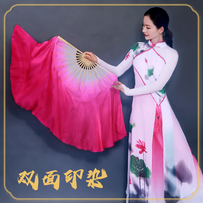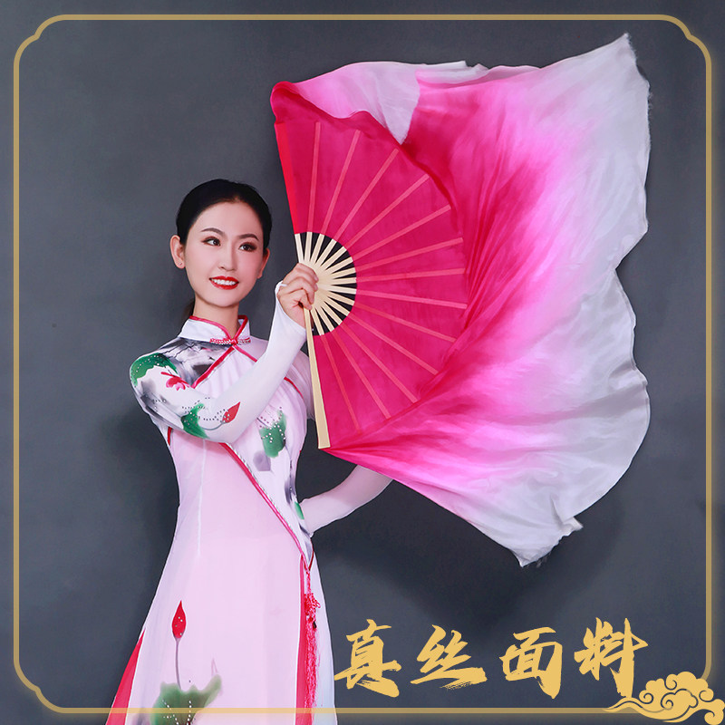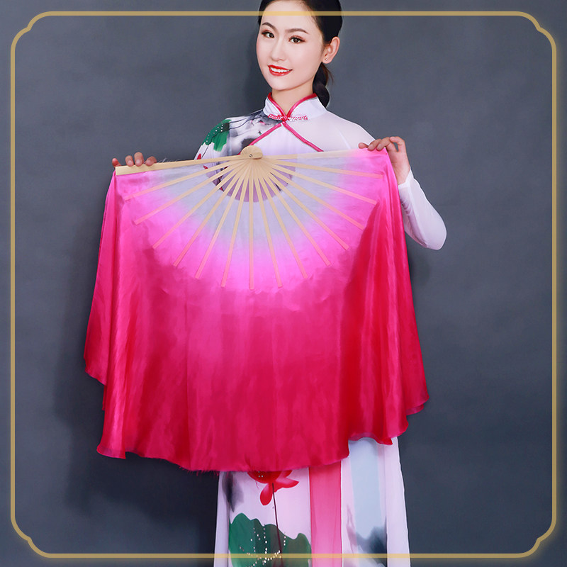 淘宝双面真丝古典玫红色渐变色舞蹈扇演出扇加长成人跳舞扇子秧歌扇